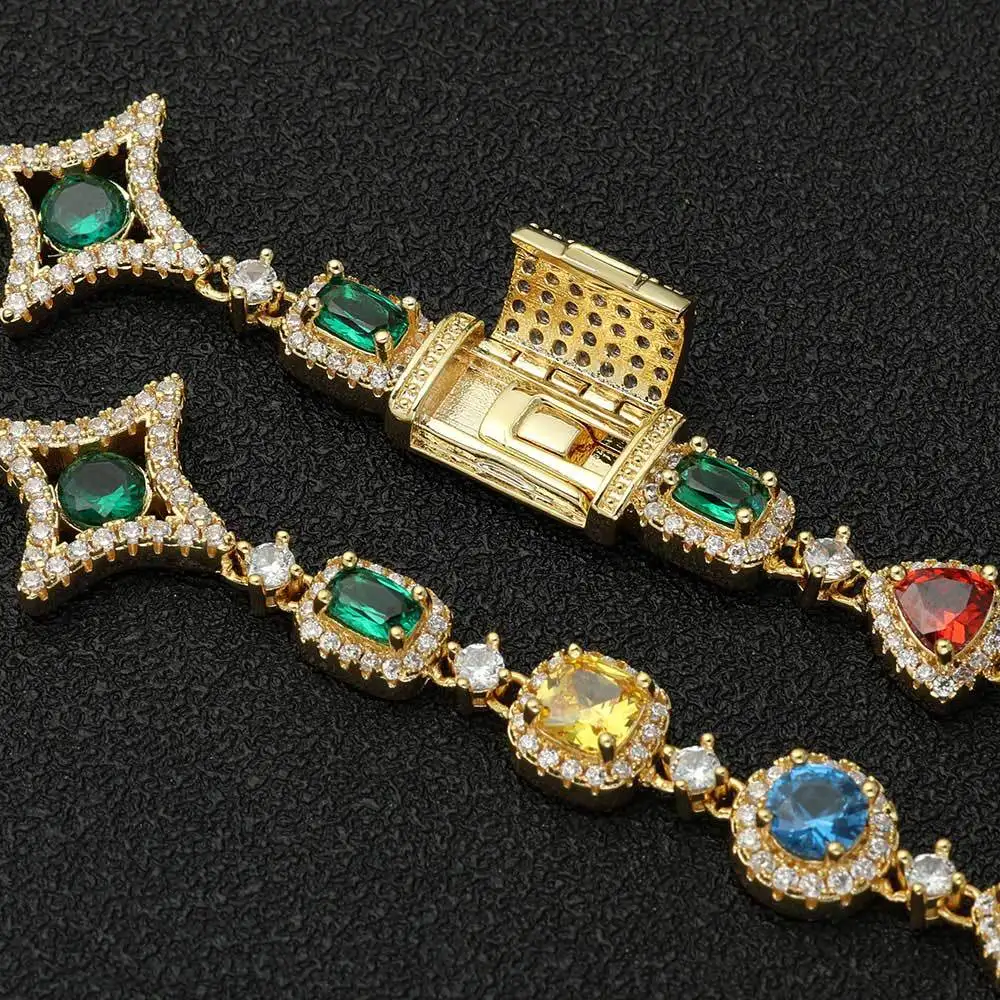 Fashion New Style Jewelry Colorful Gemstone Cubic Zircon Geometry Motif Brass Chain Link Necklace for Unisex