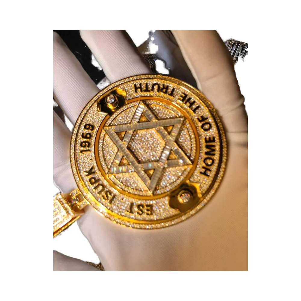 Hip Hop Luxury Gold-Plated 925 Sterling Silver Pendant VVS Moissanite Diamond with Hexagram Star and Letter Unisex Jewelry