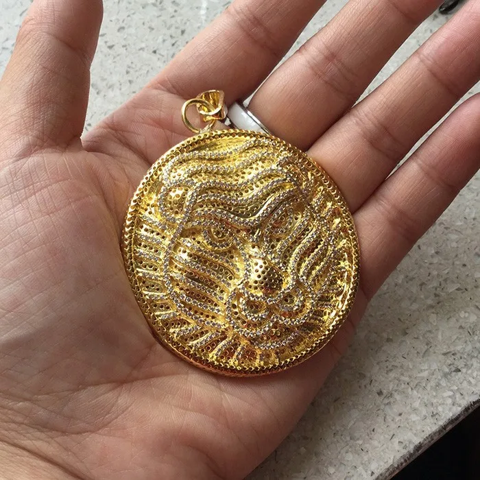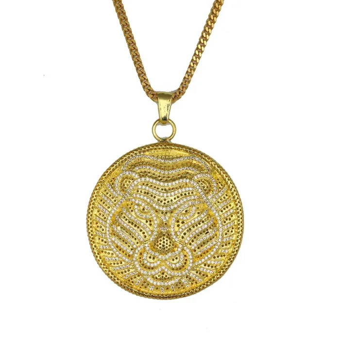 High Quality 18K Gold Plated Hip Hop Jewelry Custom Lion Head Coin Pendants for Necklace