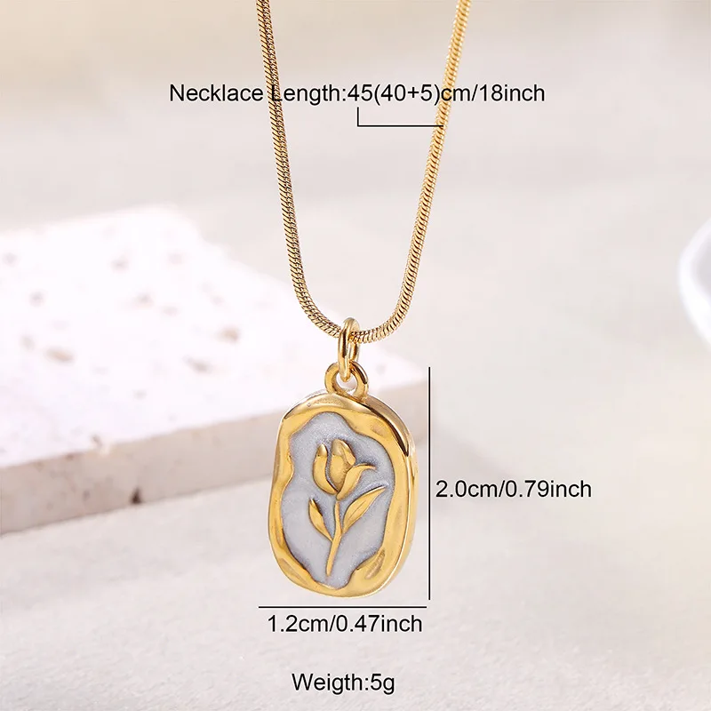 Hot Style Stainless Steel Pendant Necklace for Women Rose Pattern Design 18K Gold Plating Zircon Main Stone High Fashion Jewelry