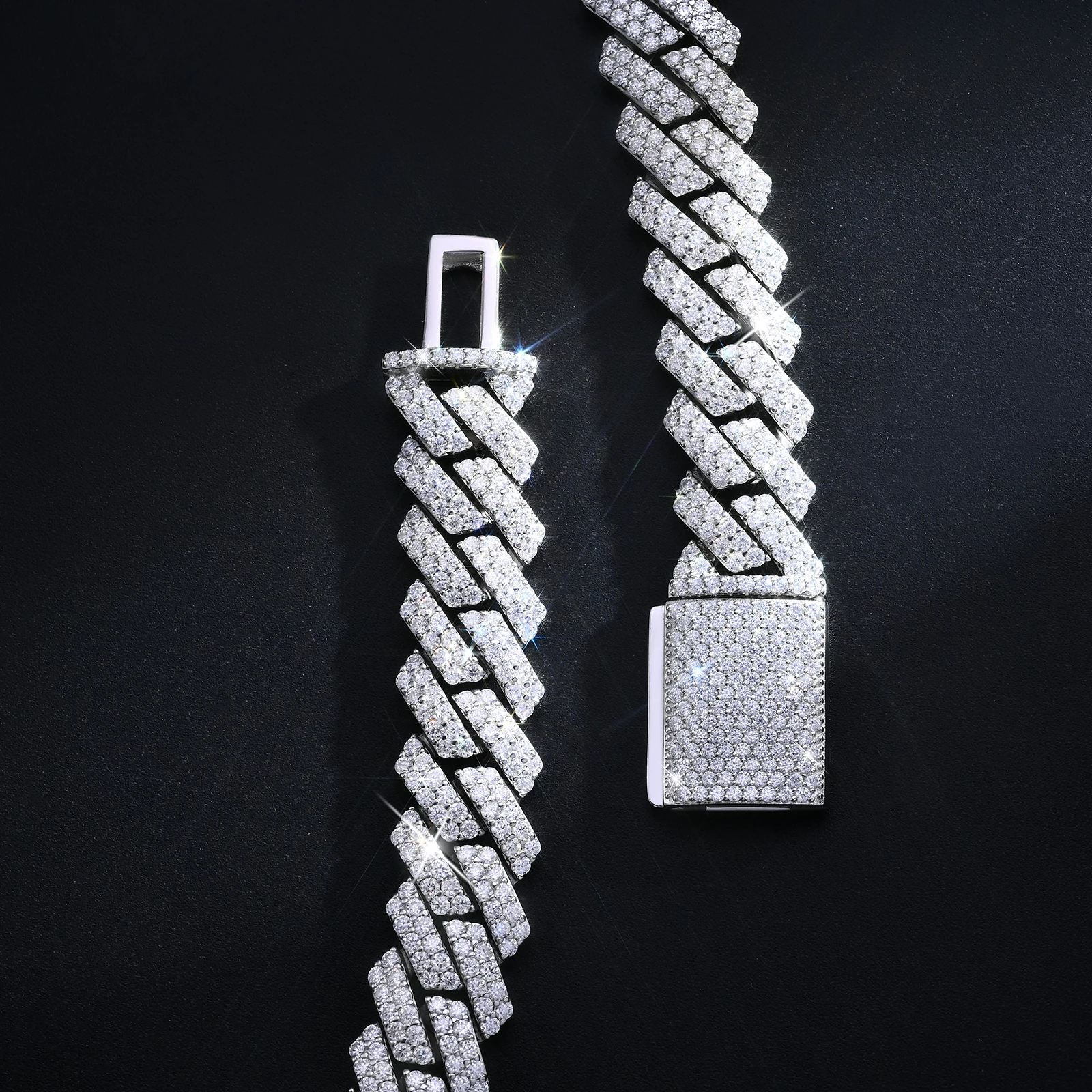Men's 8mm Silver Moissanite Cuban Link Chain Necklace with Flap Clasp Design Fine Jewelry Bracelet