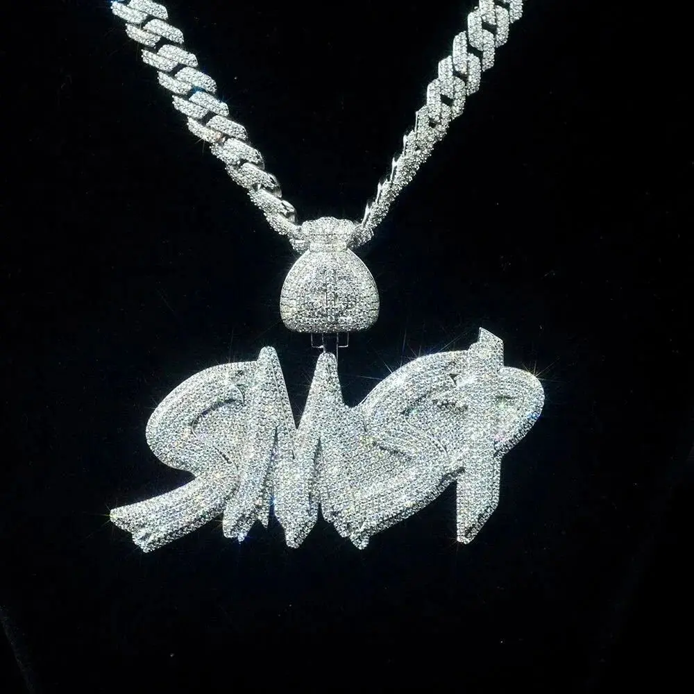 High Quality Custom VVS Moissanite Letter Pendant 10k 14k 925 Sterling Silver Iced Out 18K Gold Plated