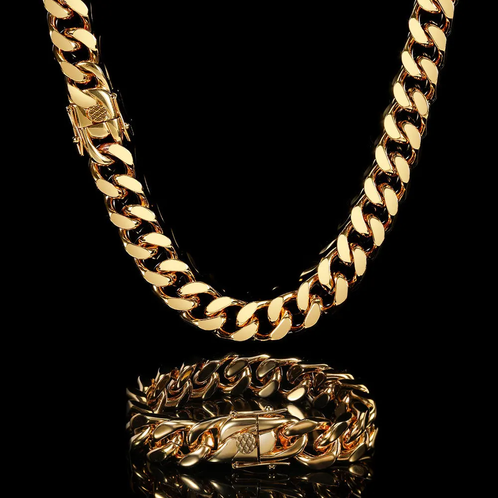 Fashion Jewelry 16mm 14k 18k Gold Plated Stainless Steel Necklace Miami Cuban Link Chain