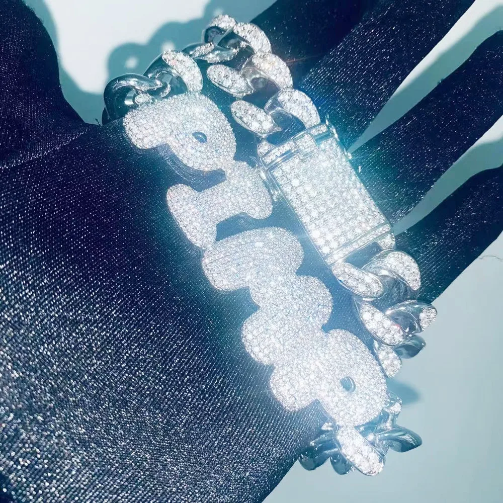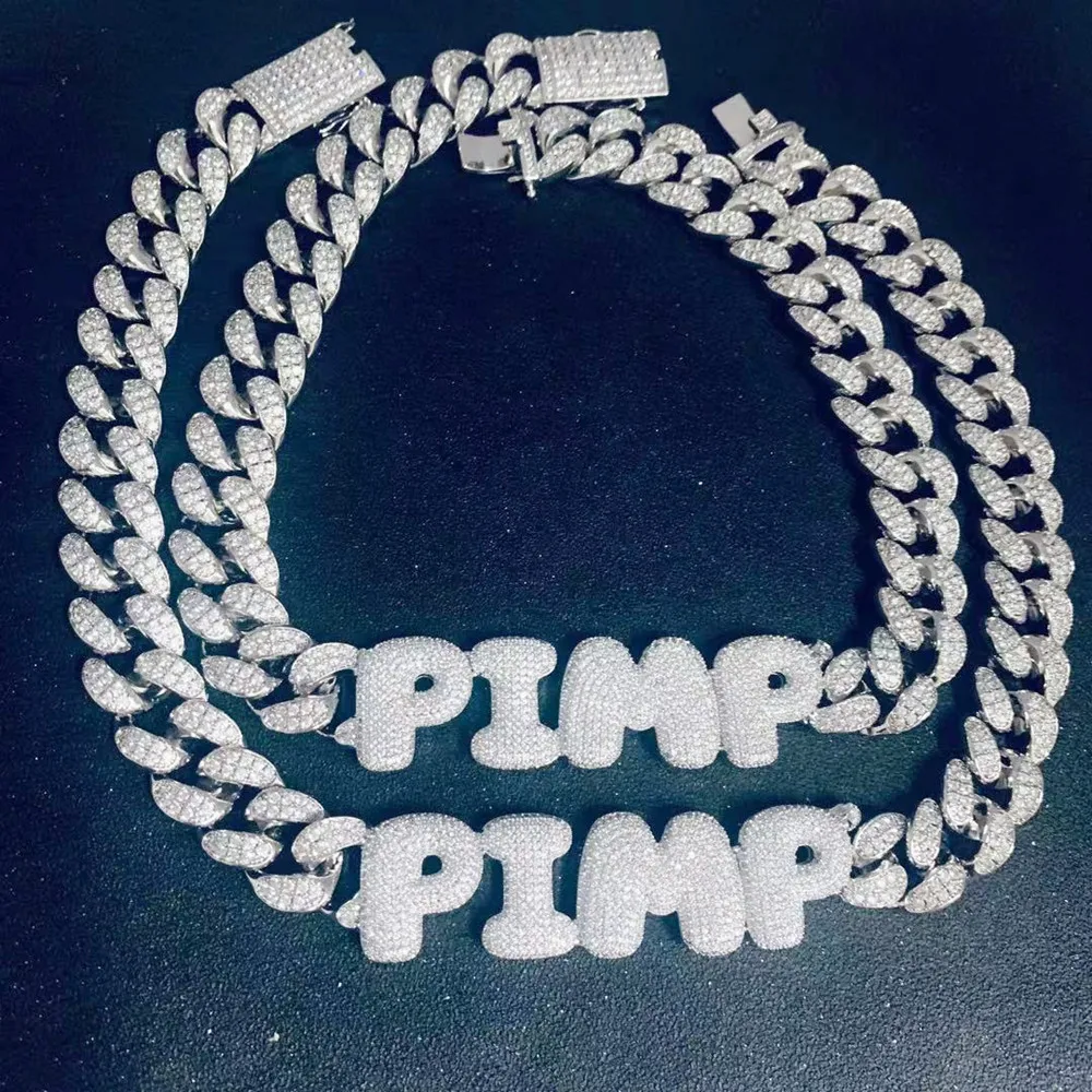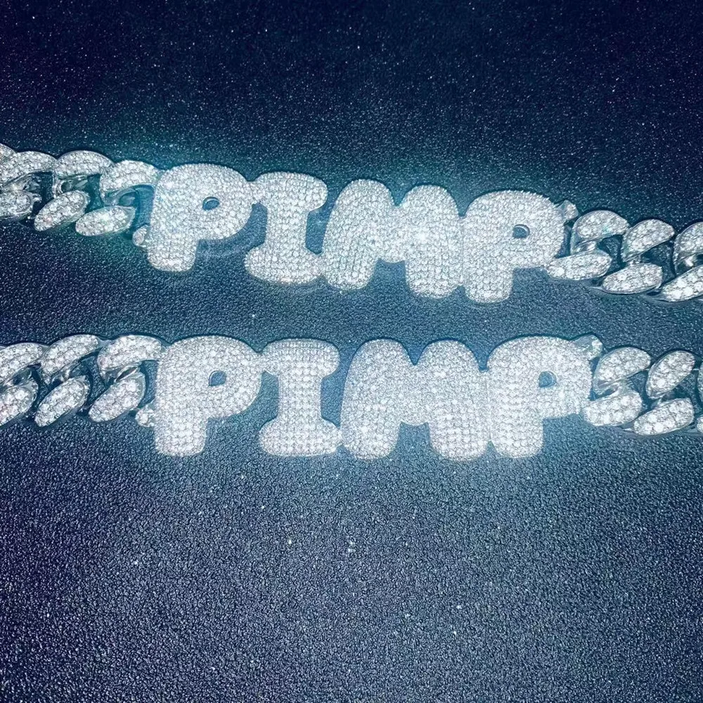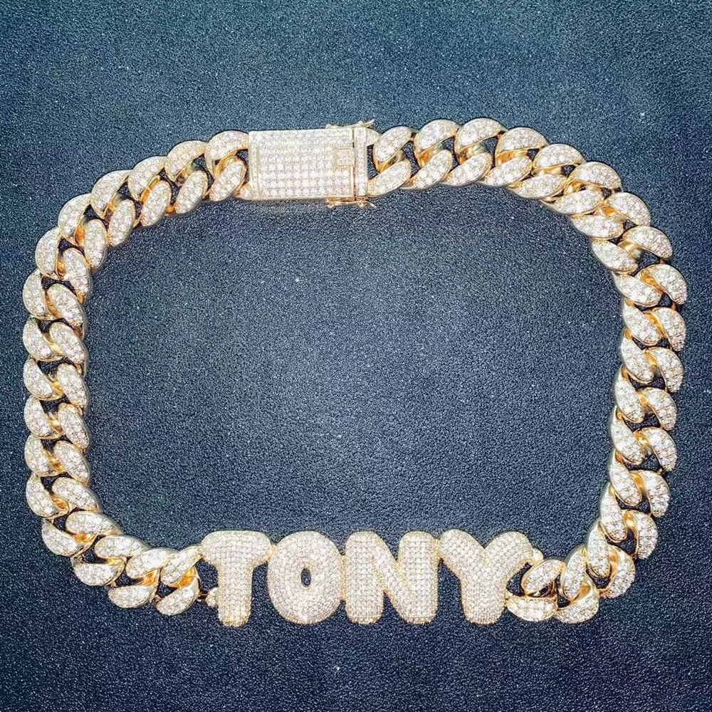 Luxury Hip Hop Jewelry Custom Name Iced Out Letter Pendant Necklace Zircon Cuban Link Chain Rhodium Plated for Weddings Gifts