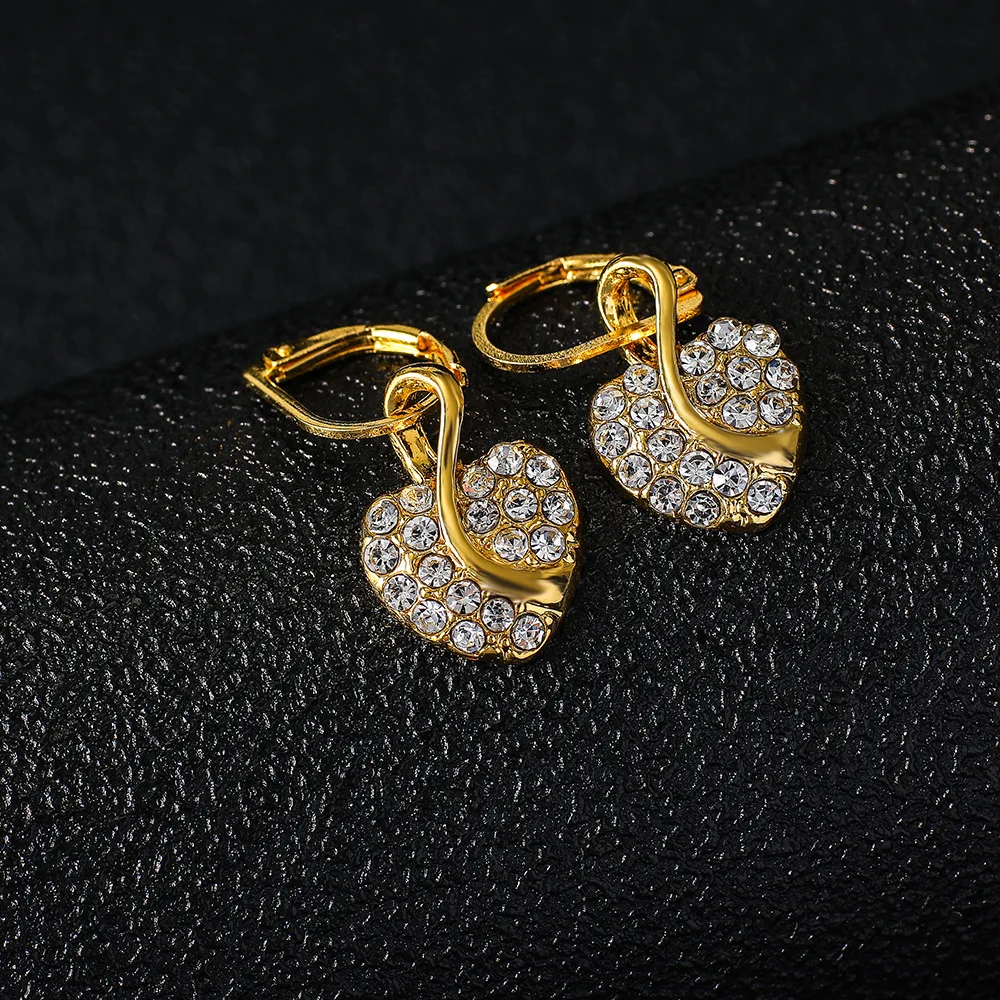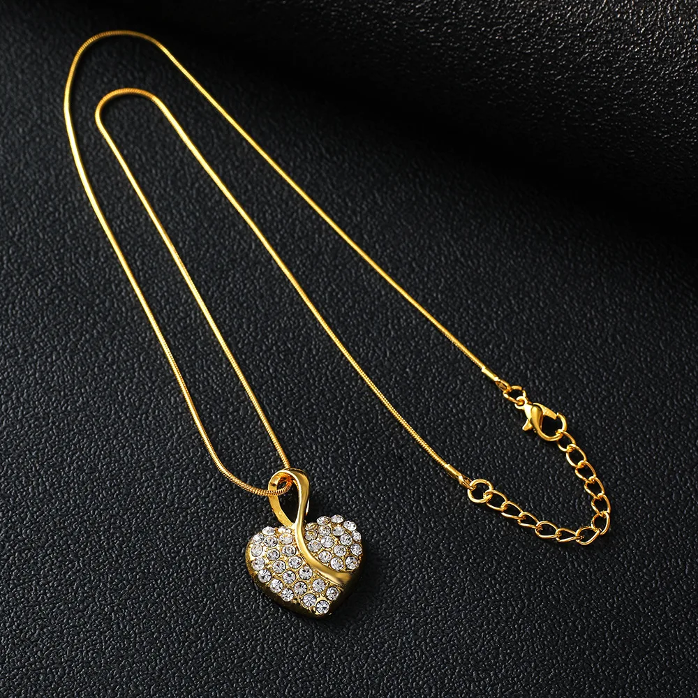 Fashion Wholesale Jewelry Design Bling Diamond Earrings Brass Heart Shape Chain Necklace for Women