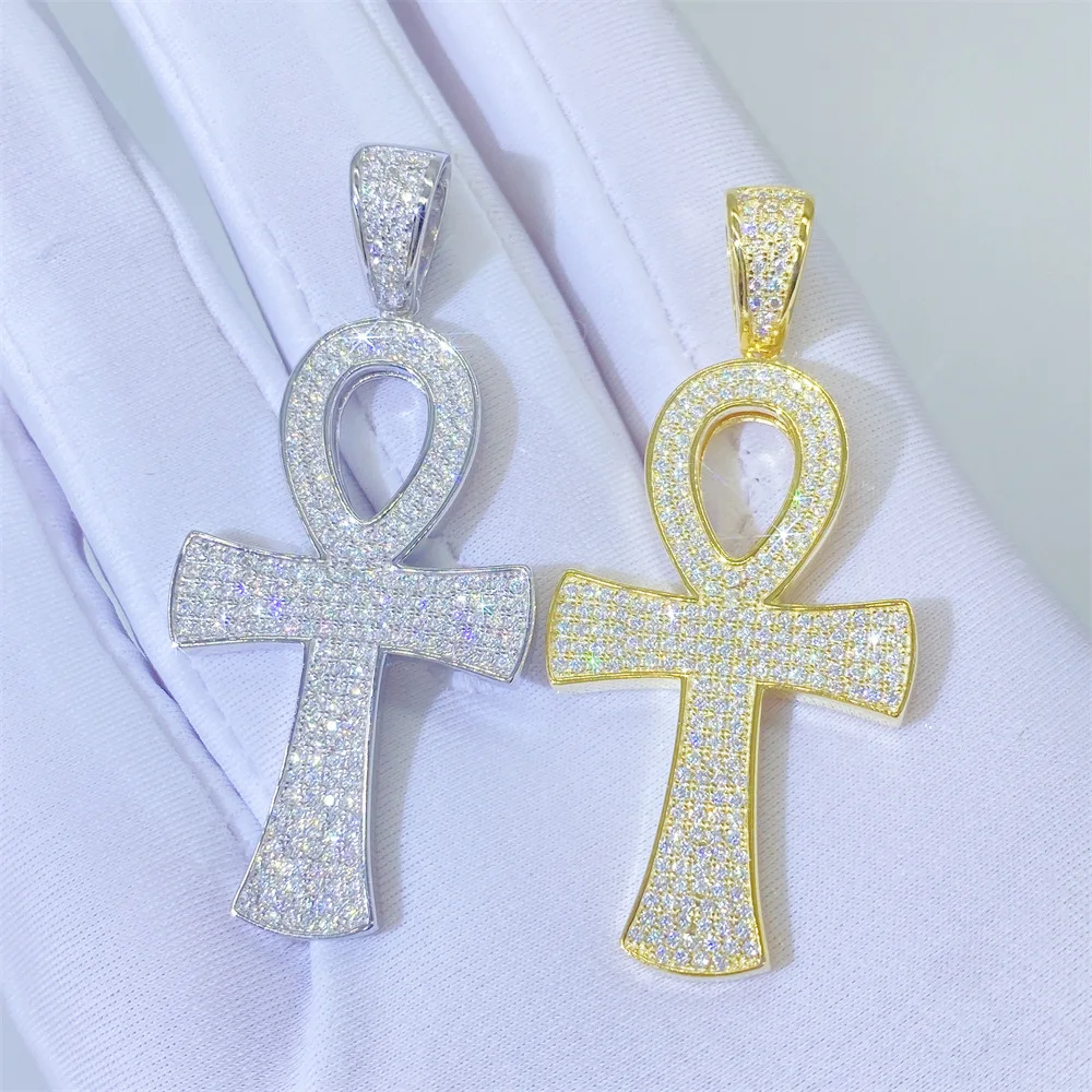 Hip Hop Jewelry Iced Out Vvs Moissanite Gold Plated 925 Sterling Silver Gold Plated Cross Pendant for Men
