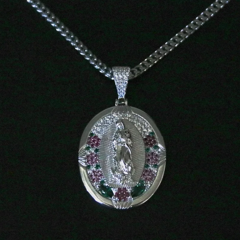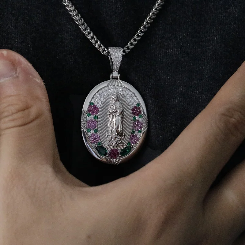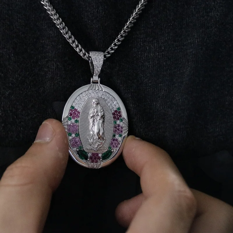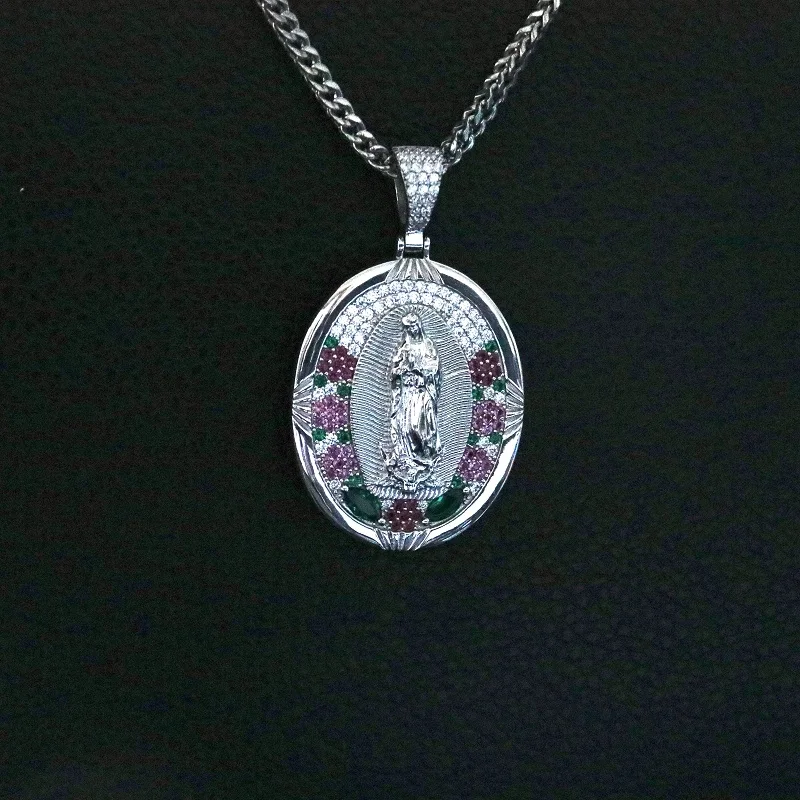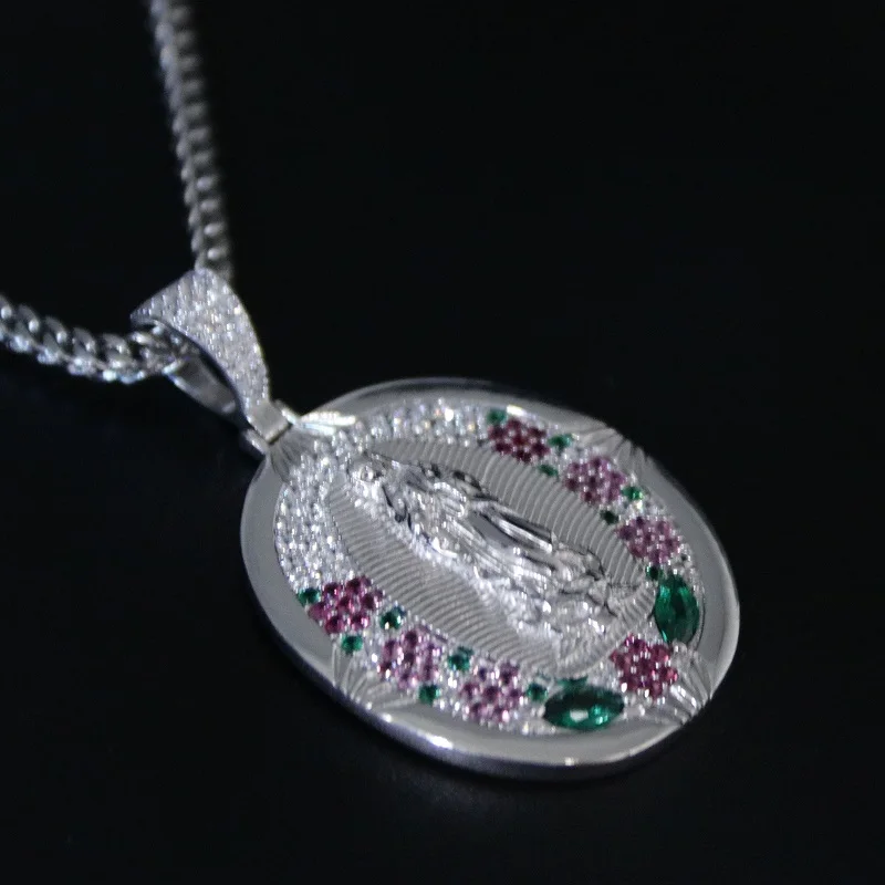 Fashion Wholesale Jewelry Colorful Bling Cubic Zircon Diamond Virgin Mary Silver Pendants Necklace for Men