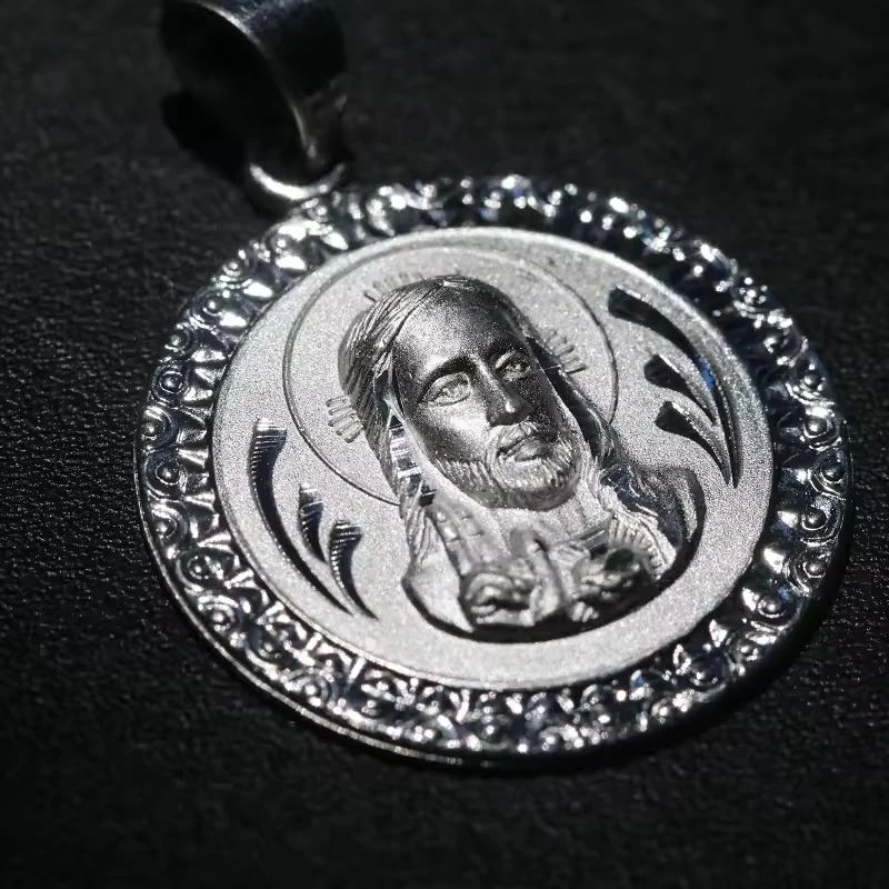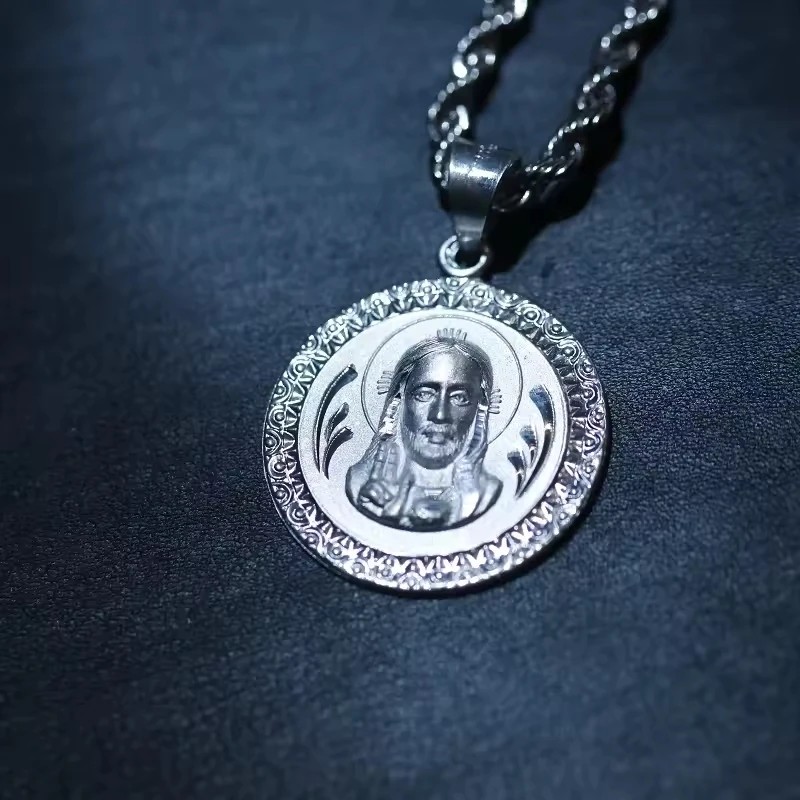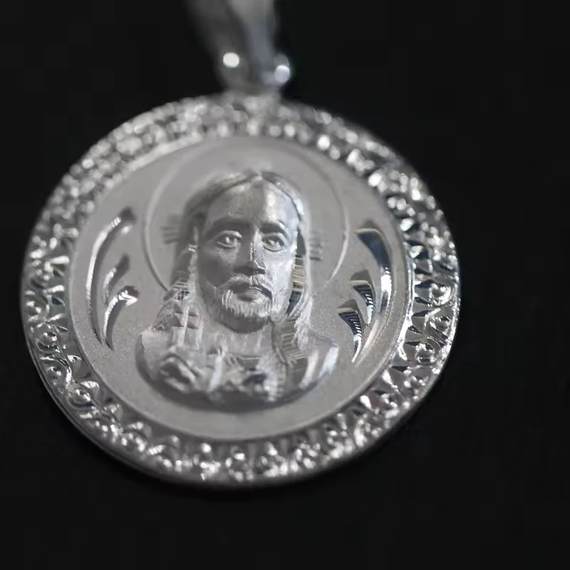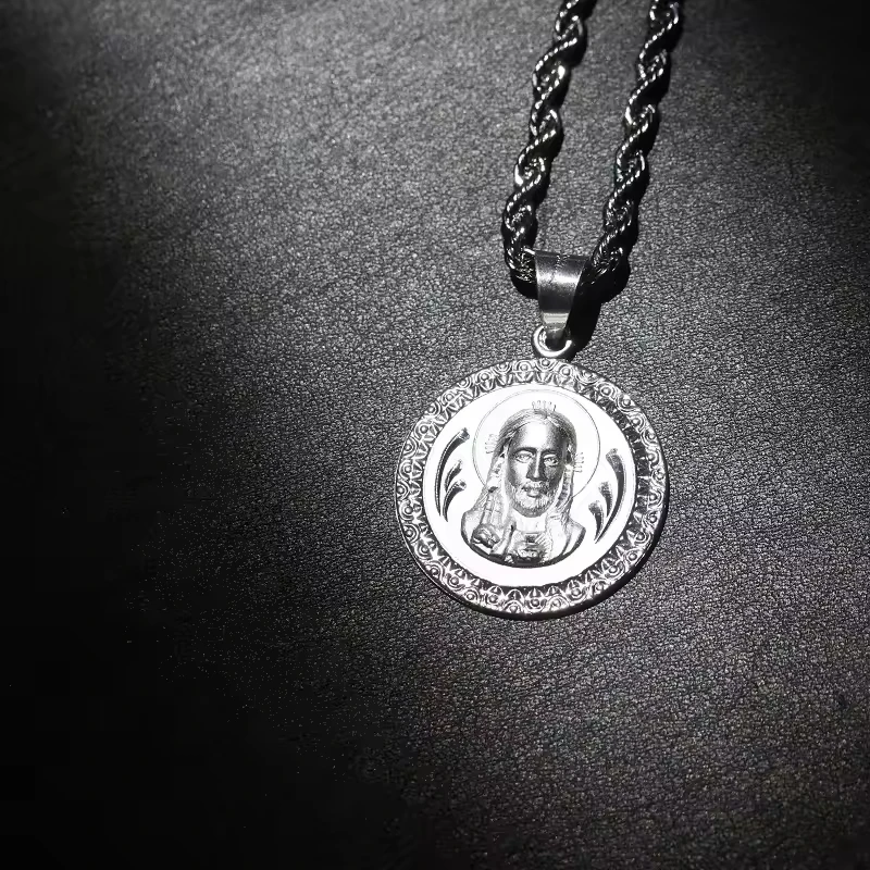 Fashion High Quality Hip Hop Jewelry 18k Gold Plated Sterling Silver Zircon Round Jesus Pendant Necklace for Men