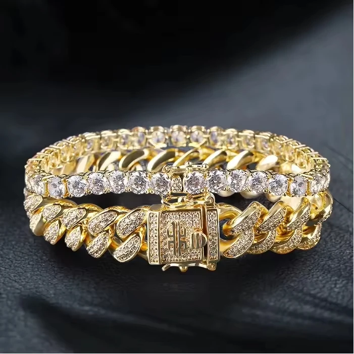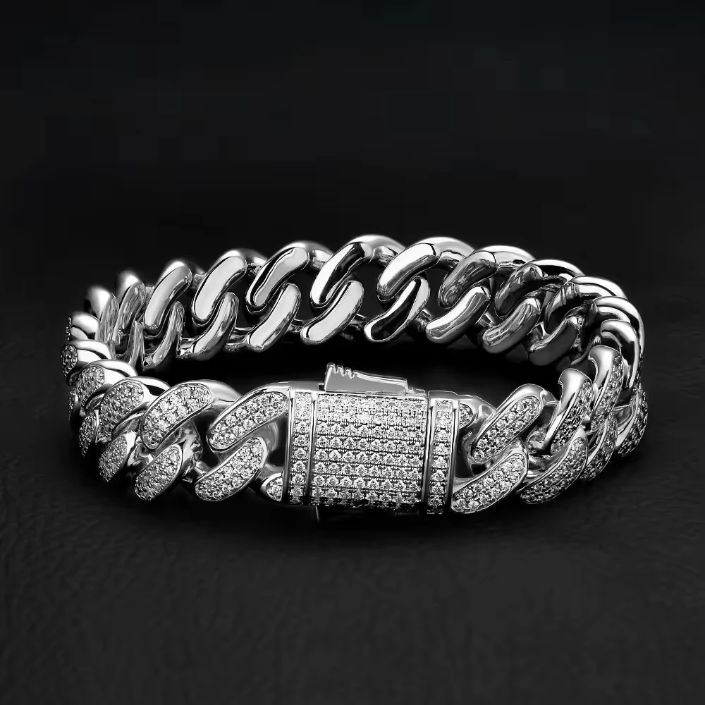 High Quality Quality and Price of 925 Sterling Silver 18k Gold Plated Moissanite Diamond Cuban Chain Bracelets for Men
