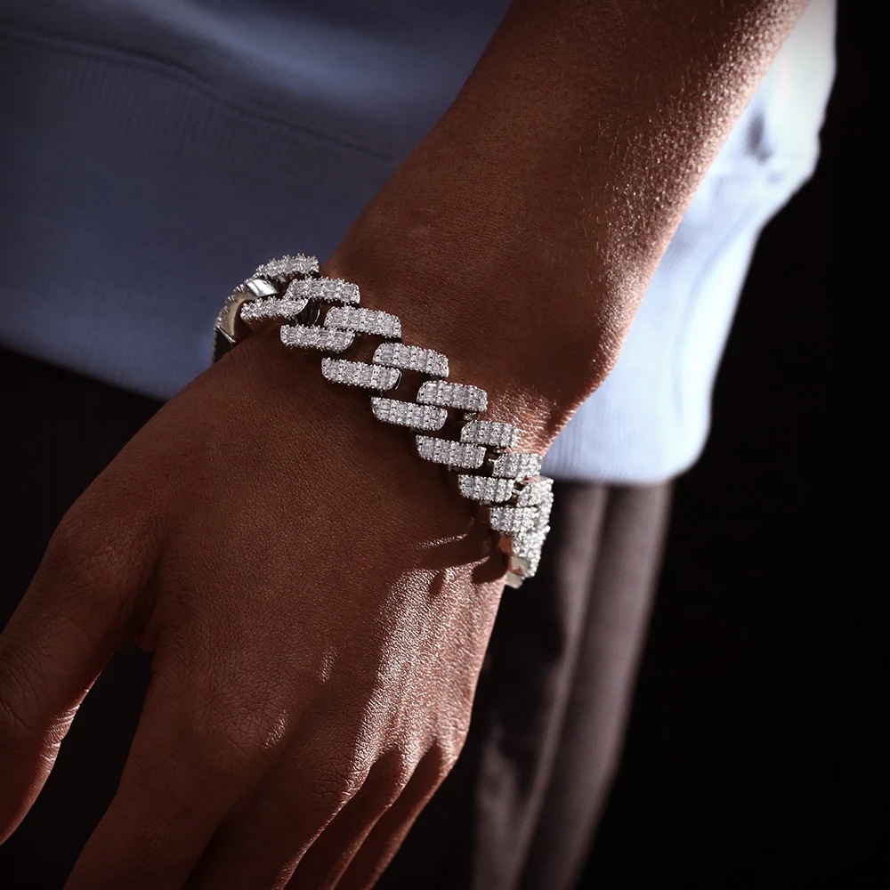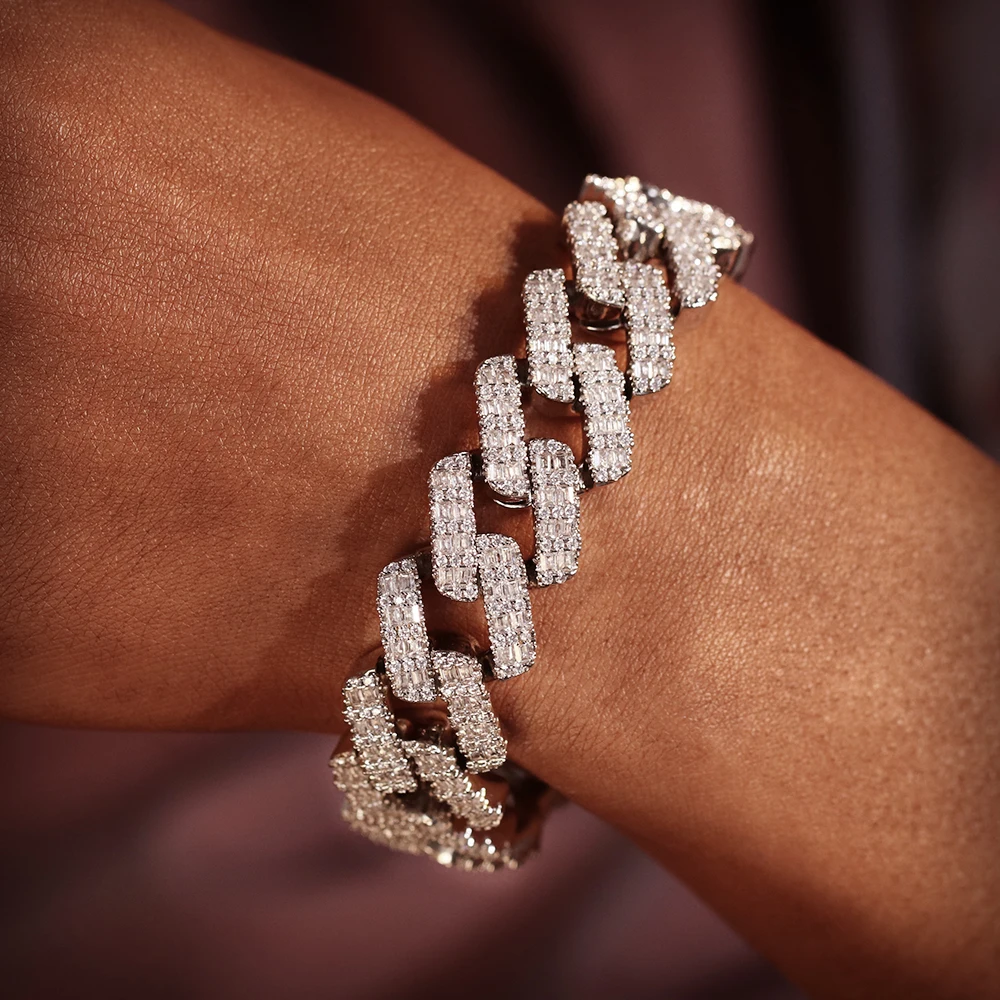 Miss Jewelry New Hip Hop 17.5mm 18k Gold Plated Men Diamond Cuban Link Bracelet CZ Bracelet for Men