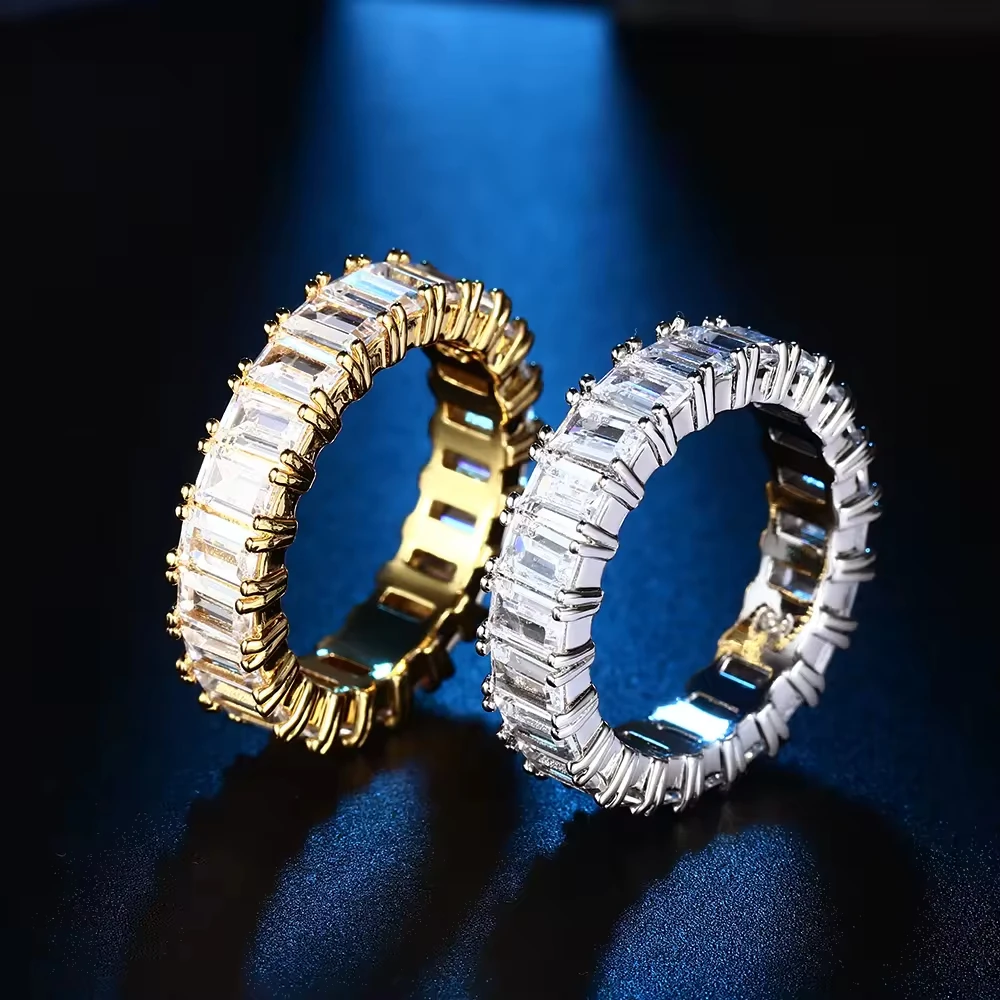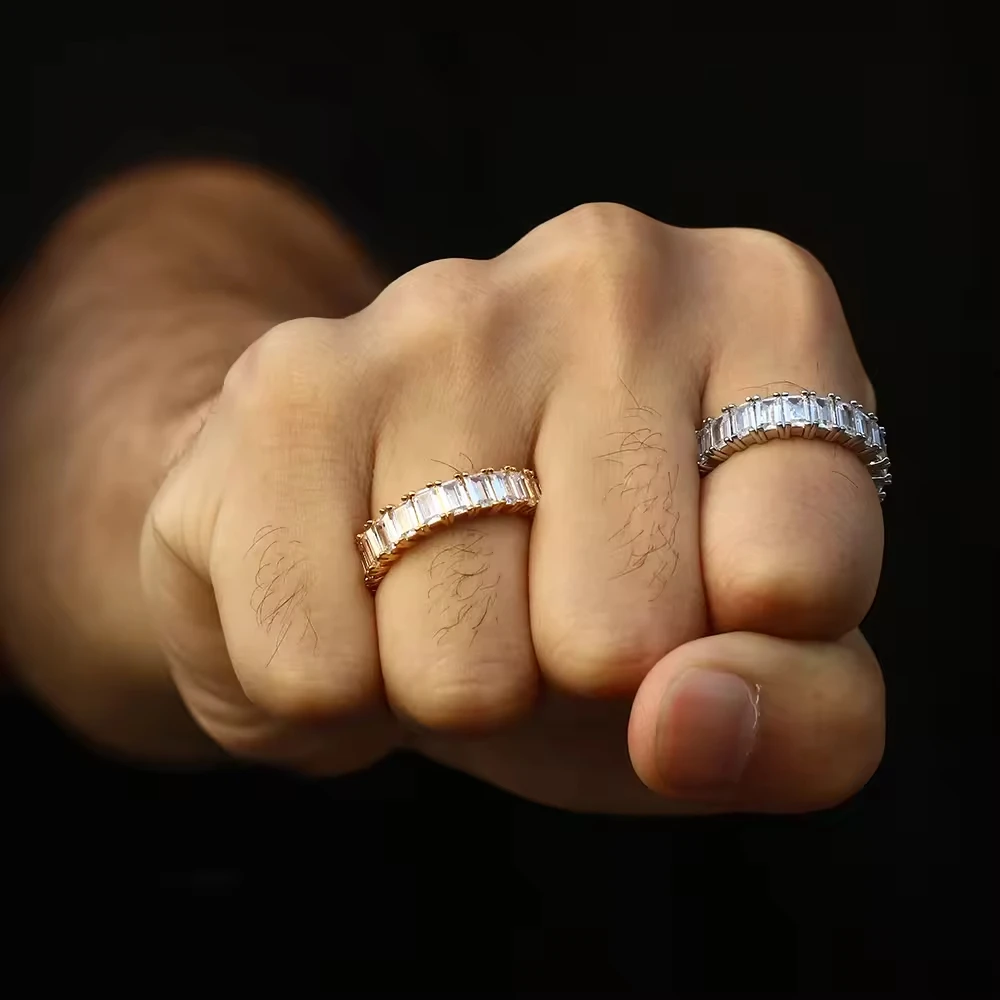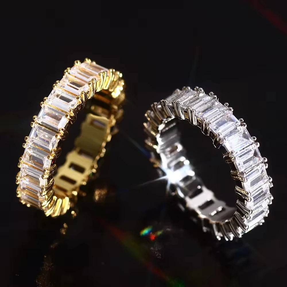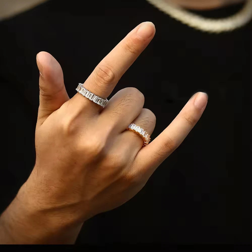 High Quality Hip Hop Jewelry Gold Plated Stainless Steel Iec Out Cubic Zircon Diamond Silver Round Rings for Women