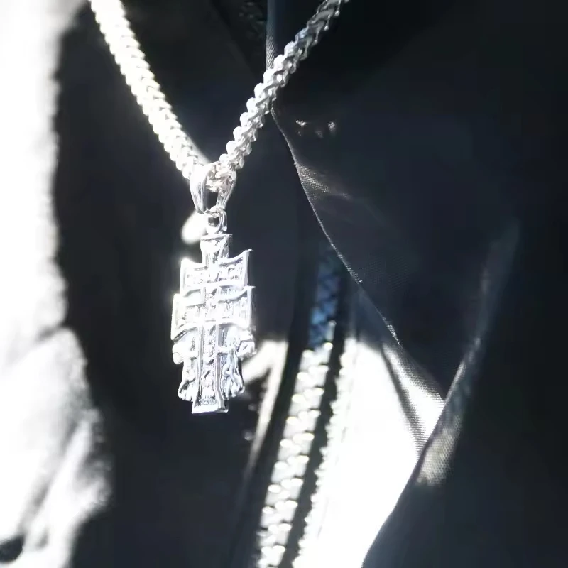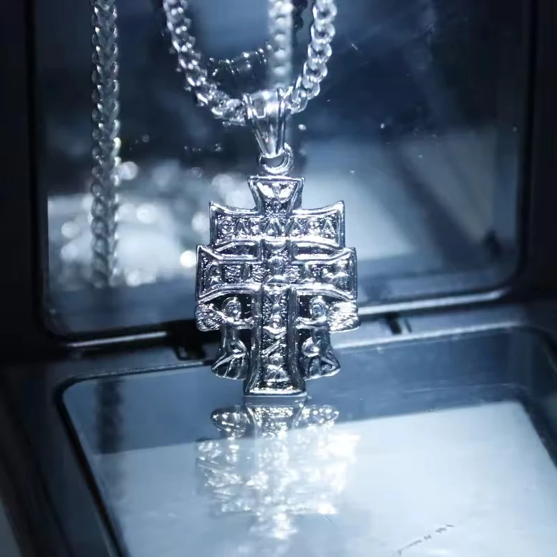 Wholesale Hip Hop Jewelry Gold Plated Silver Angel Double Cross Pendant Necklace