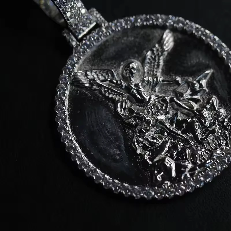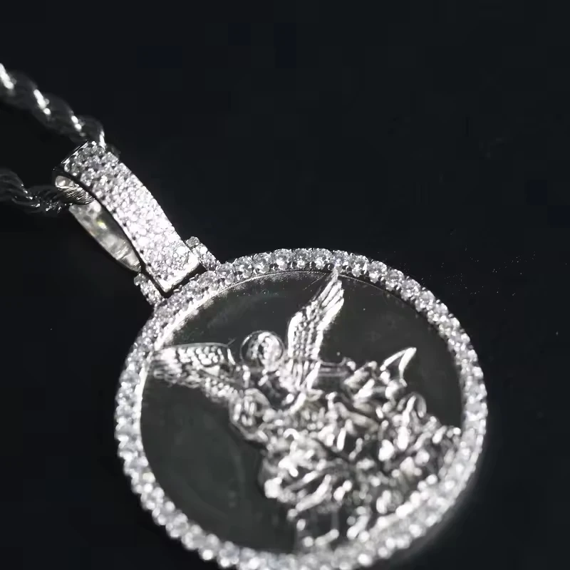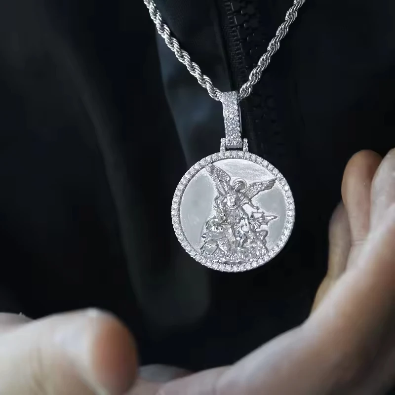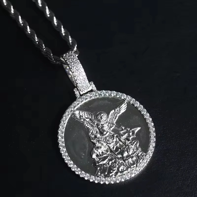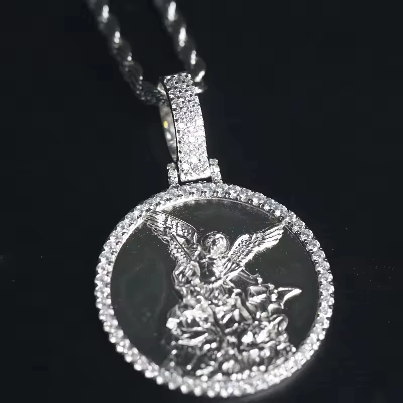 Best Quality Unique Pattern Design Jesus Zircon Hip Hop Unisex Sterling Silver Necklace