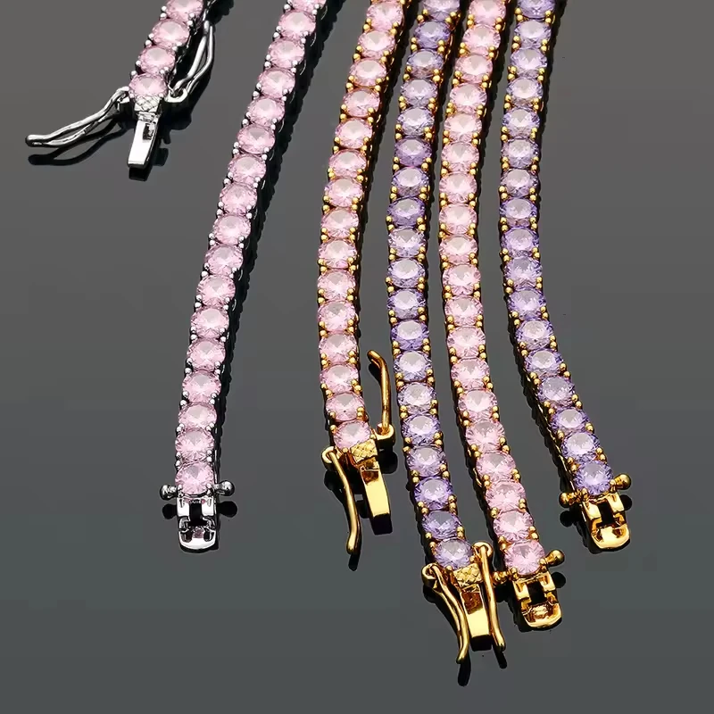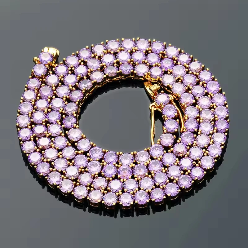 Wholesale Hip Hop Jewelry Brass Link Chain Necklace Pink Iec Out 5A Cubic Zircon 18k Gold Plated for Mens