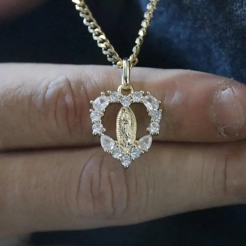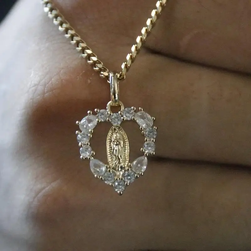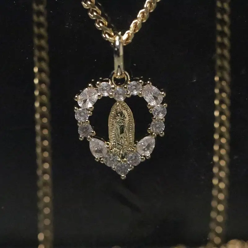 Fashion Hip Hop Jewelry Design 18k Gold 925 Sterling Silver Virgin Mary Iced Cubic Zircon Jesus Pendant Necklace Third Party