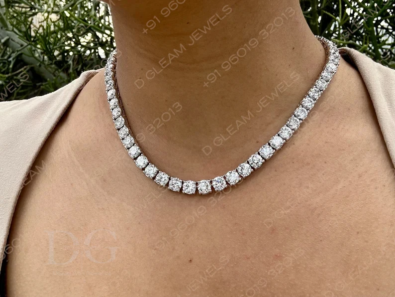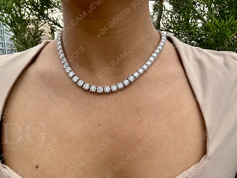 Women's 40 Carat Moissanite Diamond Tennis Necklace Trendy Link Chain 14K Polished White Yellow Rose Gold IGI Certified Daily