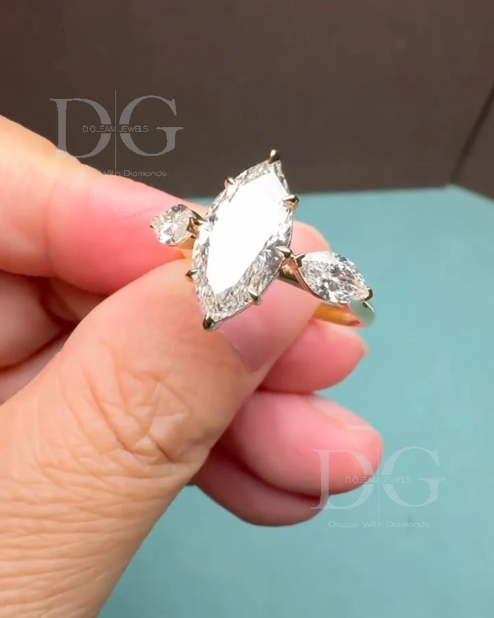 Handmade IGI Certified 3 CT Marquise Cut Moissanite 8-Claw Prong Set Three Stone Engagement Wedding Anniversary Gift Ring 14K