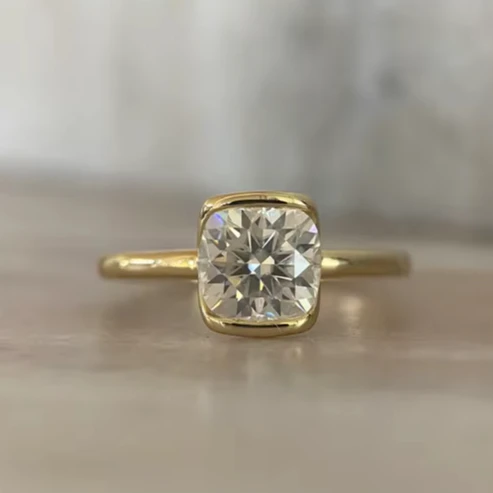 Certified Moissanite Diamond Cushion Cut Fine Rings Wedding Engagement Romantic Anniversaries Gift Parties Bezel Setting Inlay
