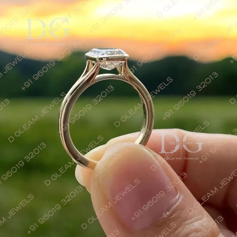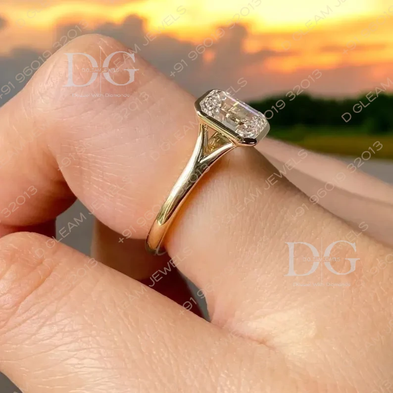 Handmade 14K Yellow Gold Engagement Wedding Ring 3CT Lab Grown Asscher Cut Solitaire Prong Setting Customizable Promise Parties