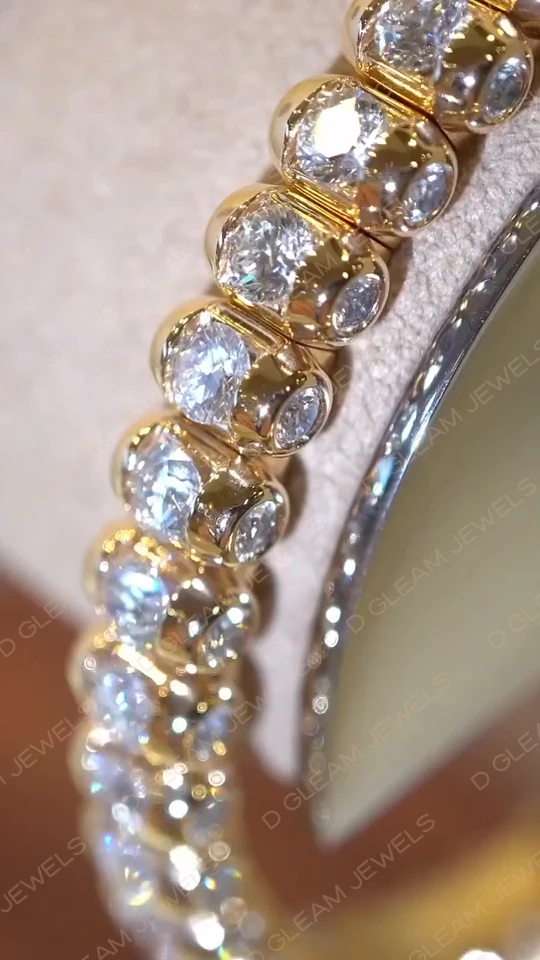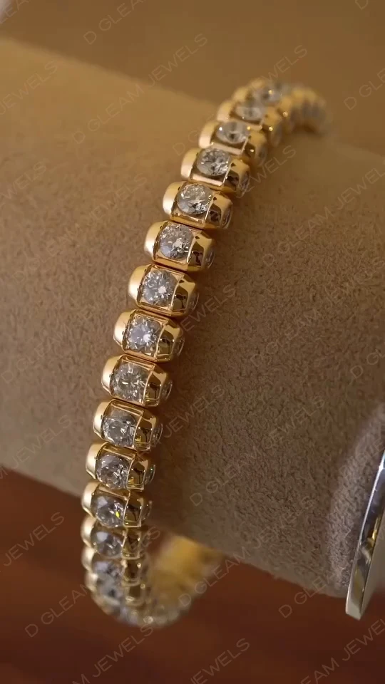 Classic Yellow Solid Gold Tennis Bracelet Lab Grown VVS Solitaire Natural Diamond Women's Daily Fine Chain Link Parties