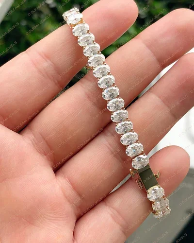 Daily Wear 14K Yellow Solid Gold Lab Grown VVS Oval Cut Diamond Tennis Bracelet Fine Chain Link Bracelets for Women's