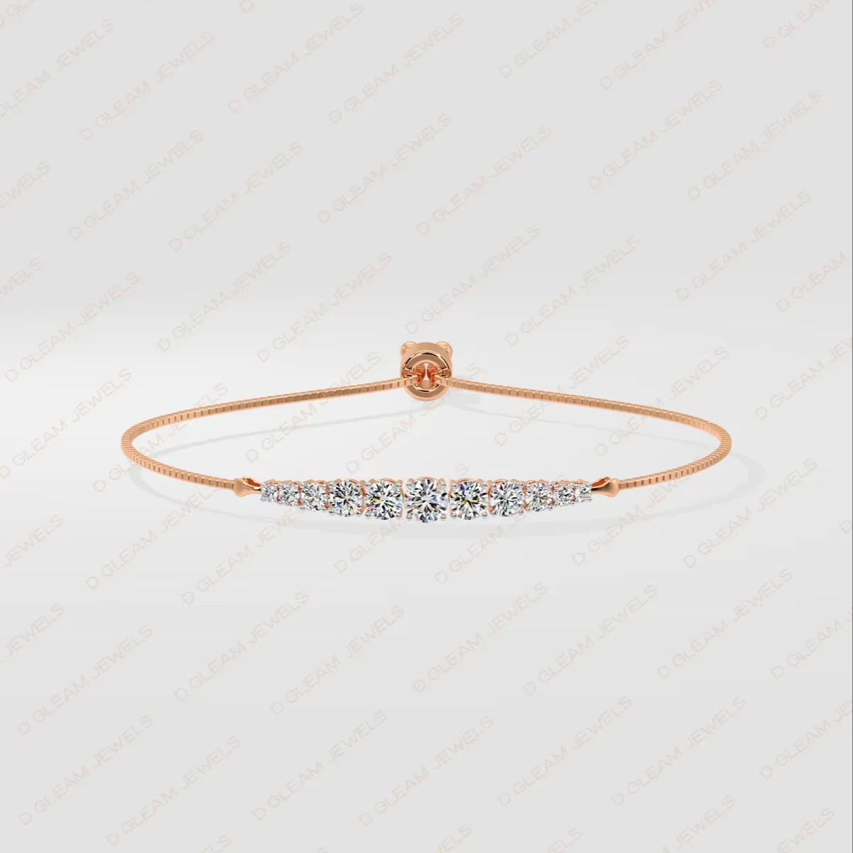 14K Yellow Solid gold Solitaire Lab Grown Cut Diamond Tennis Bracelet Classic Design Fine Chain Link Jewelry for Parties