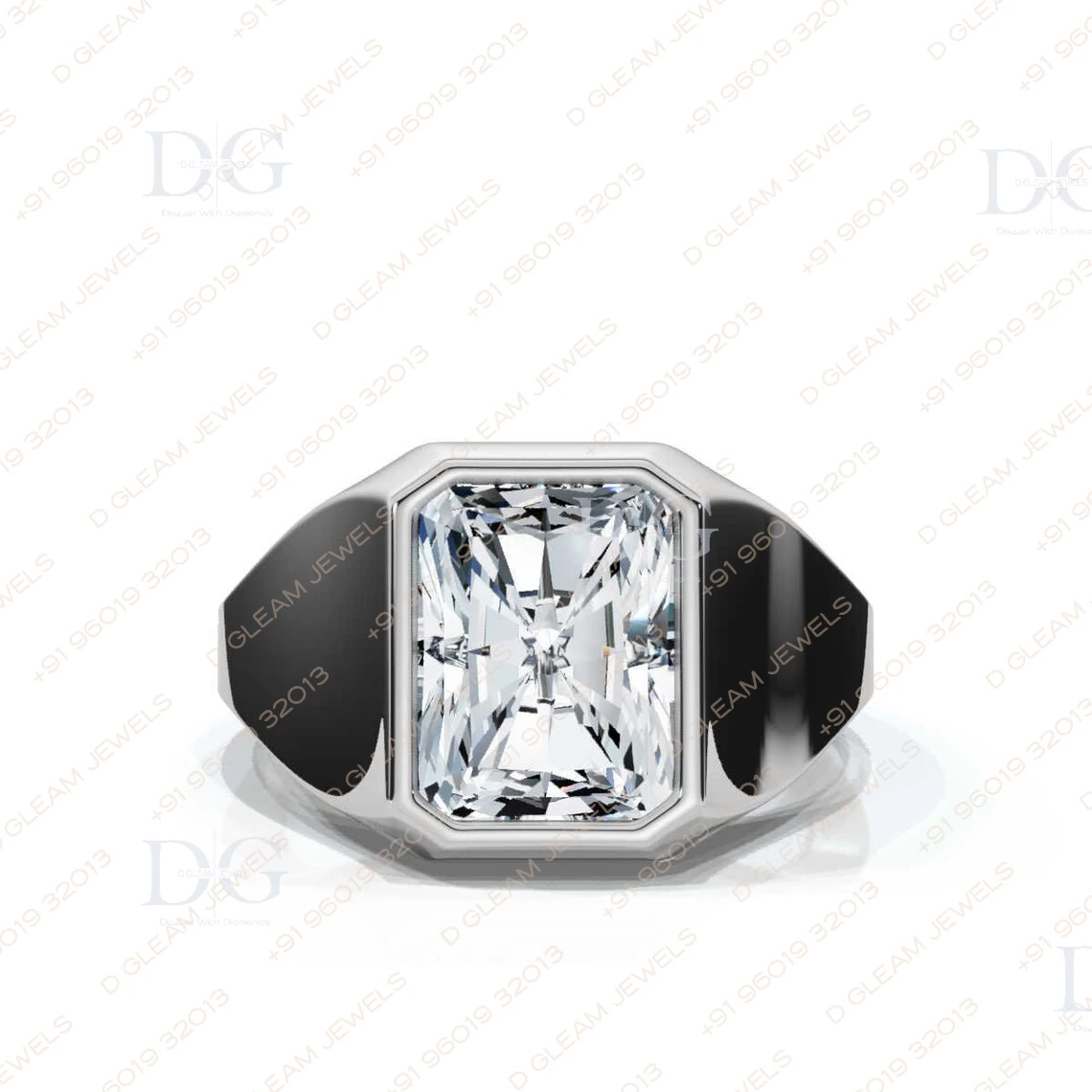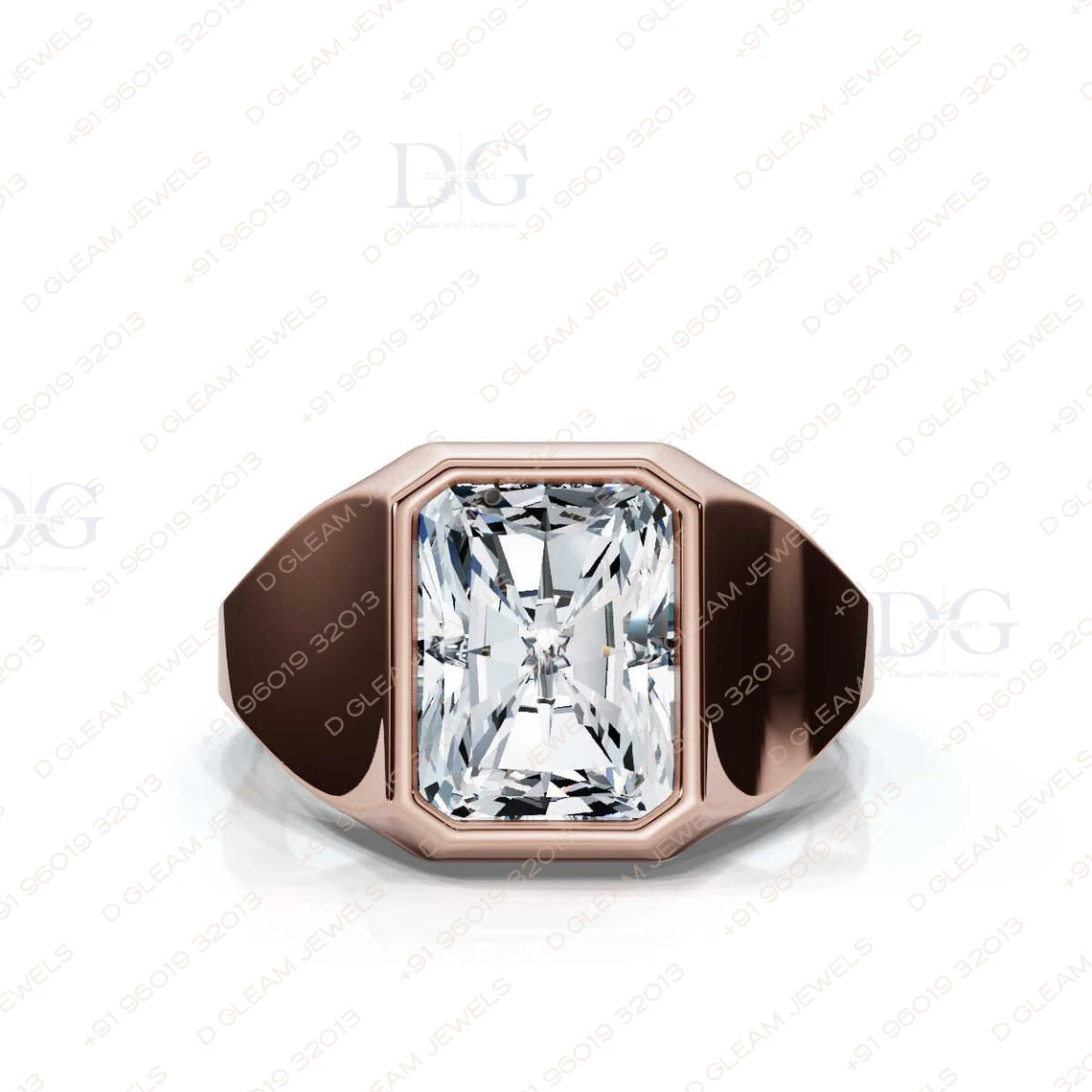 IGI Certified 3.Ct Radiant Cut Men's Engagement Ring Bezel Setting Wedding Ring in 14K Yellow Gold Lab Grown Diamond for Men