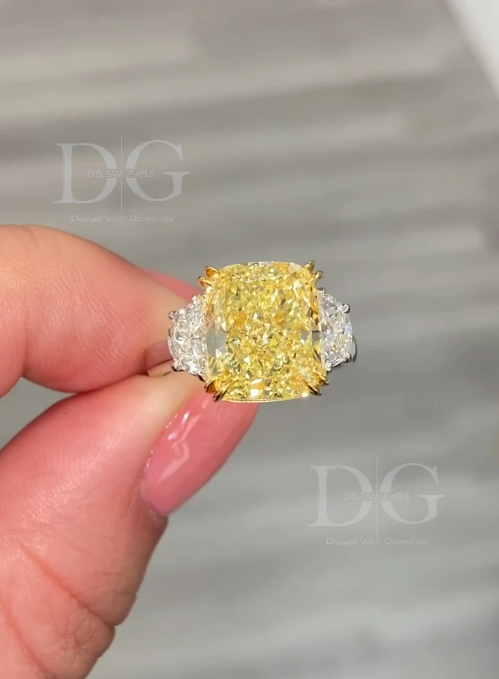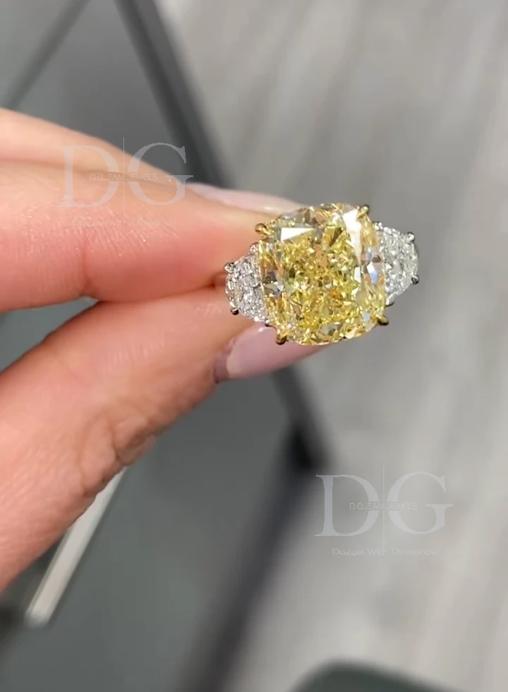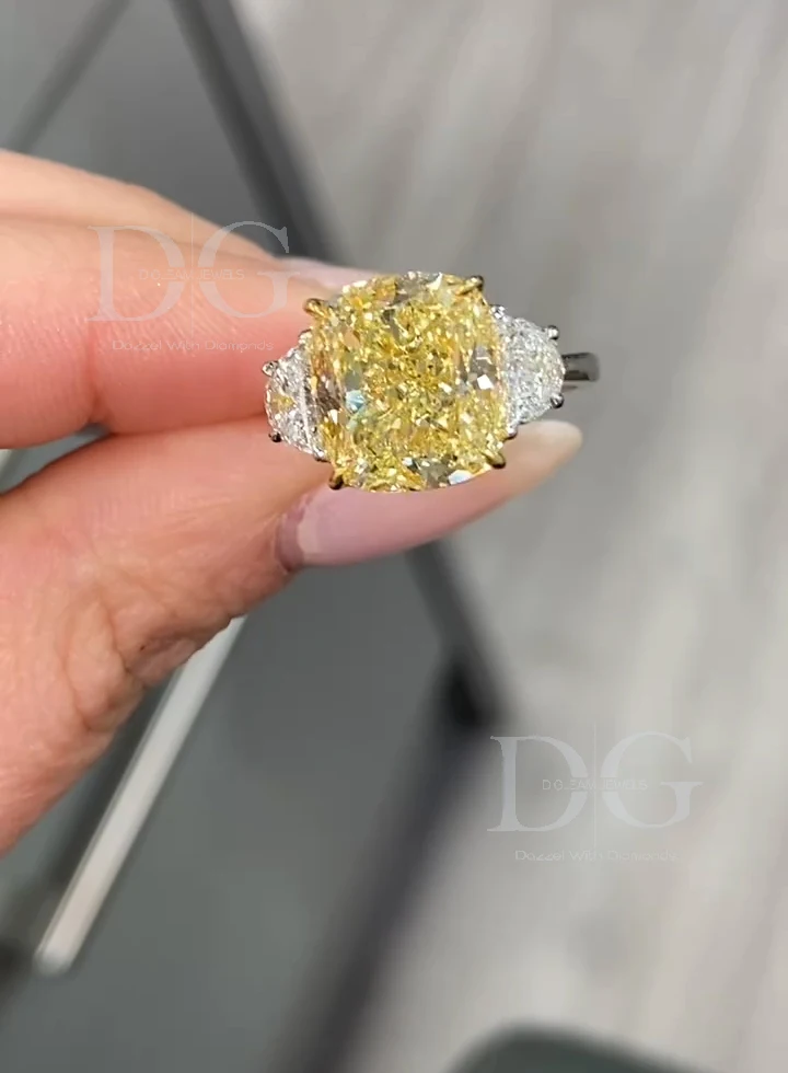 Cushion Cut 5.01 Carat White Yellow Gold Ring Wedding Promise Anniversary Fancy Three Stone for Engagement Gift Party