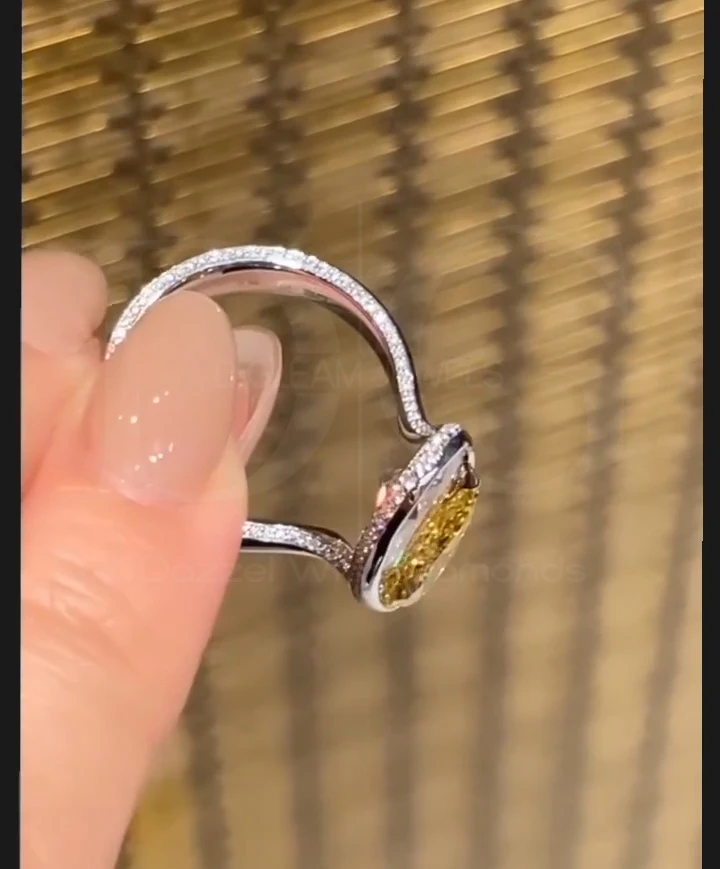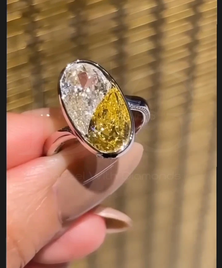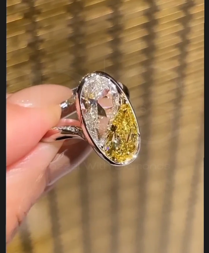 Toi Et Moi Engagement Ring, Canary Yellow Pear Diamond Ring, Bezel Set Ring, Hidden Halo Ring, Two Side Diamond Wedding Band