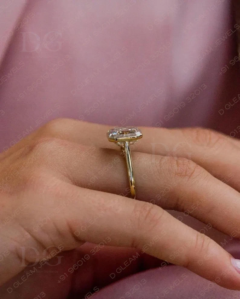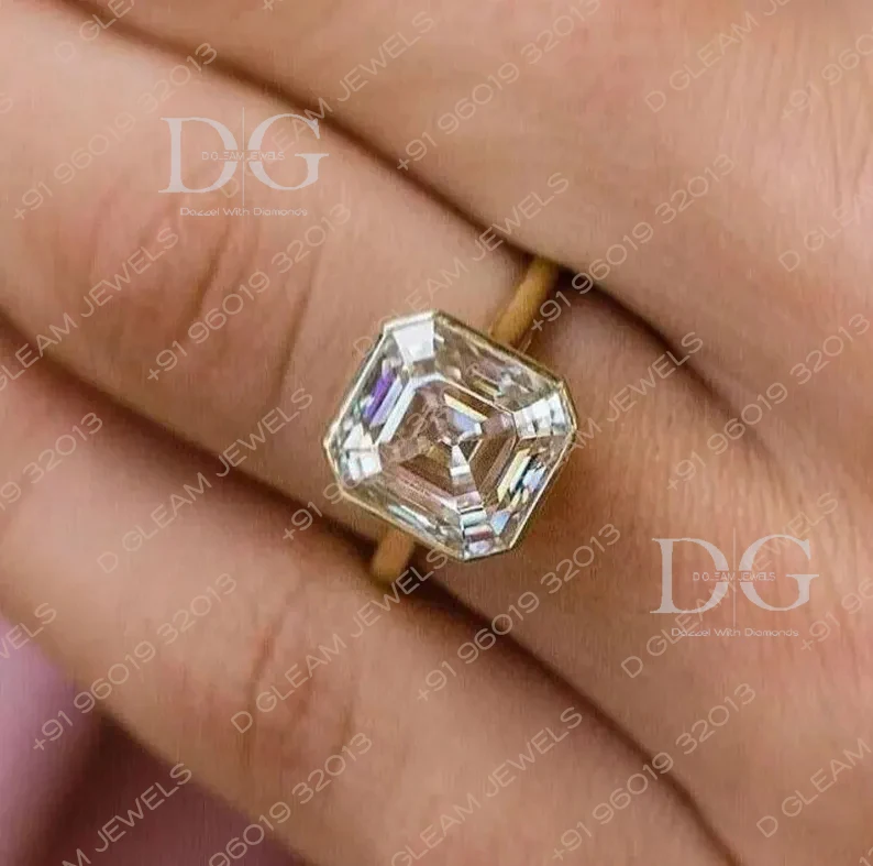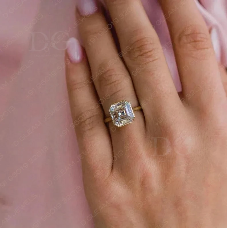 2.5 CT Asscher Cut Engagement Bezel Set 14K Solid Gold Wedding Ring for Her Anniversary Gift for Parties Colorless Diamond