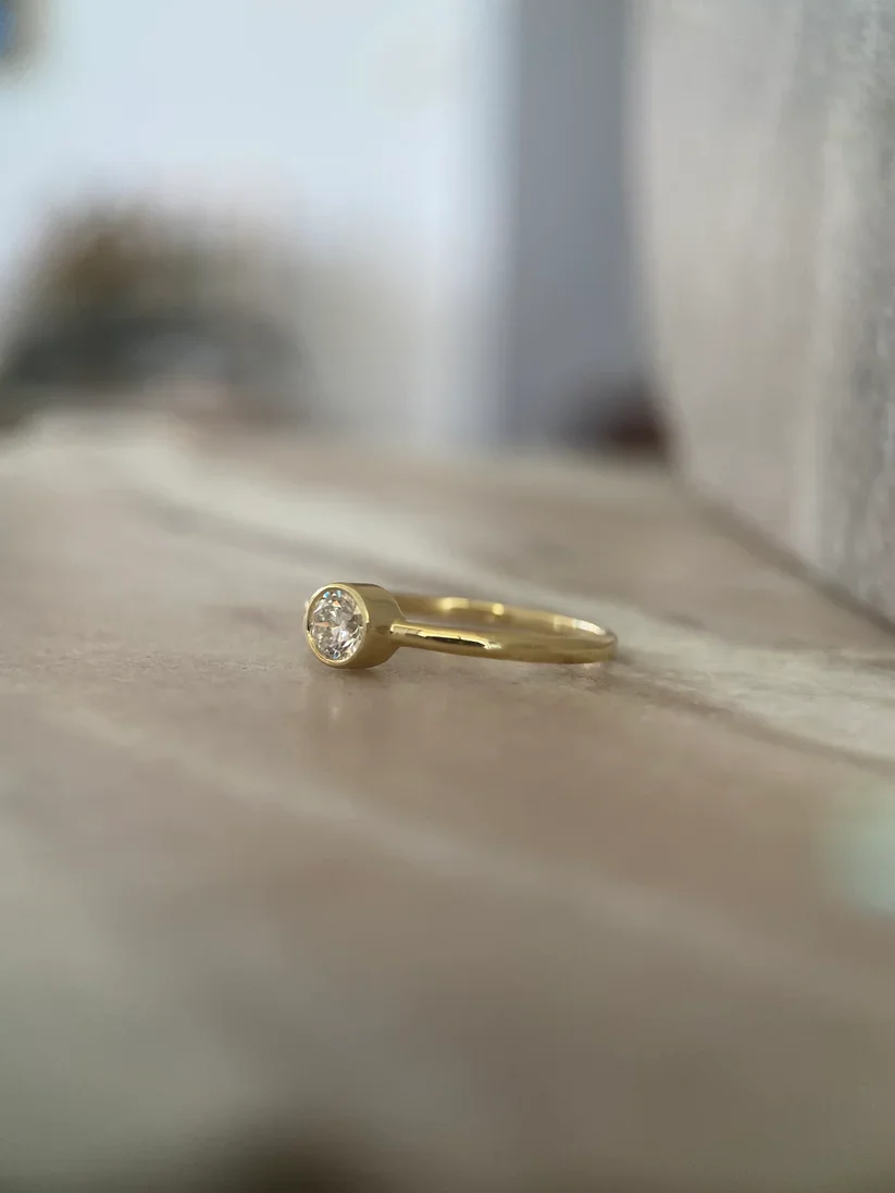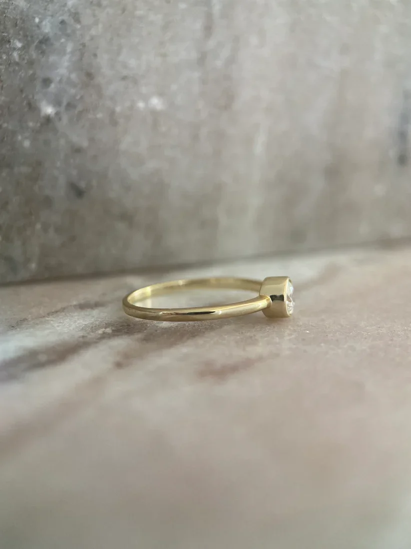 Itty Bitty Beauties Round 4mm 0.25 Carat Lab Diamond Ring Elongated Round Cut Engagement 14K Yellow Gold for Weddings