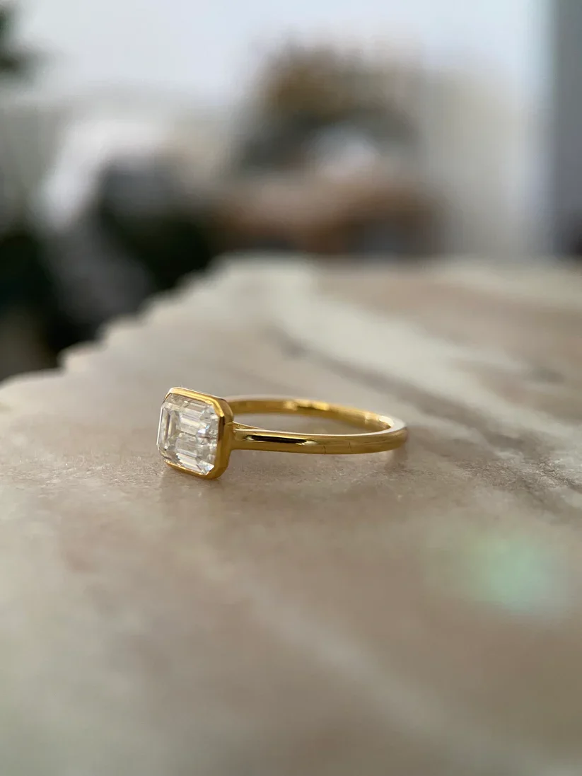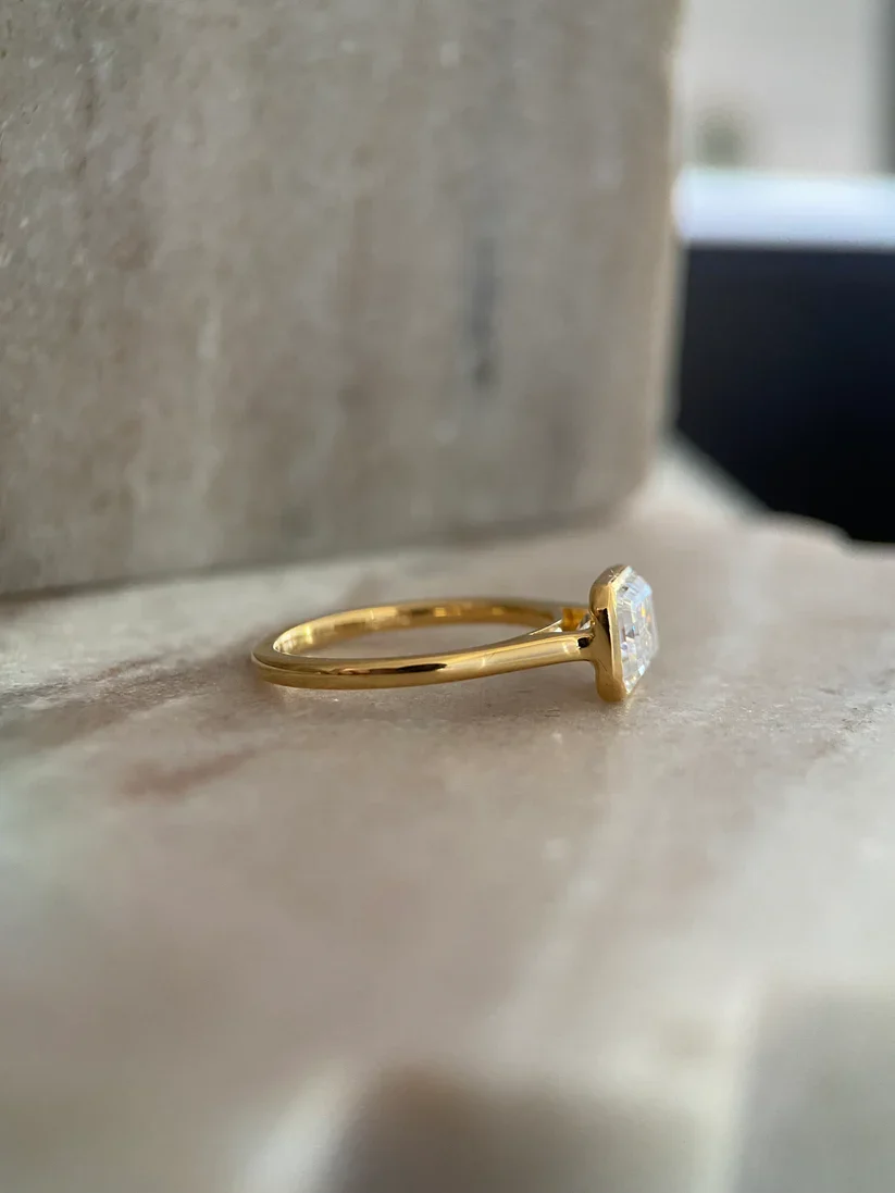 Bangin Bezel Emerald E2W Edition IGI Certified Lab Grown Diamond Solitaire Ring 14K Yellow Gold Ethnic Fine Jewelry Wedding