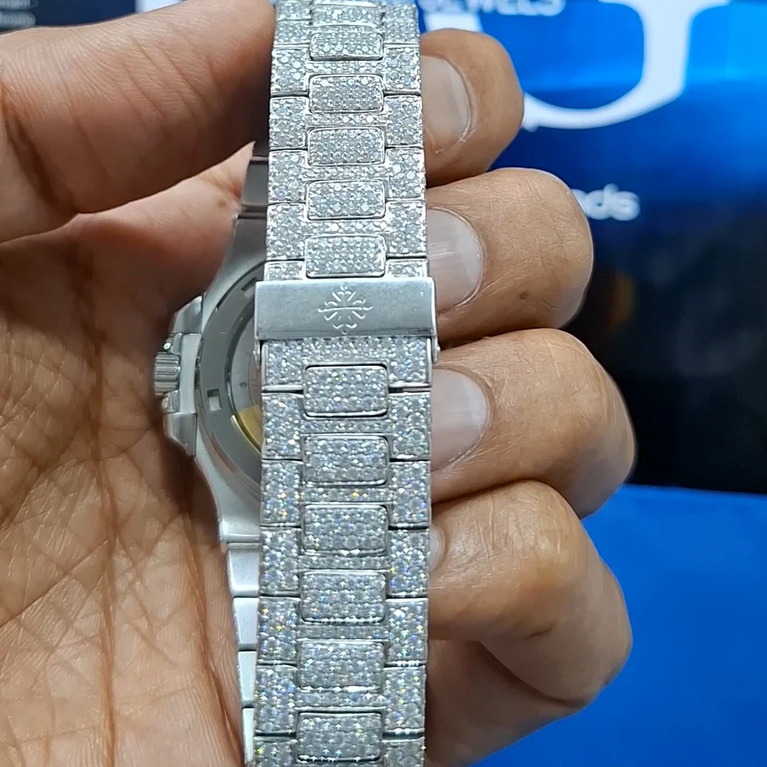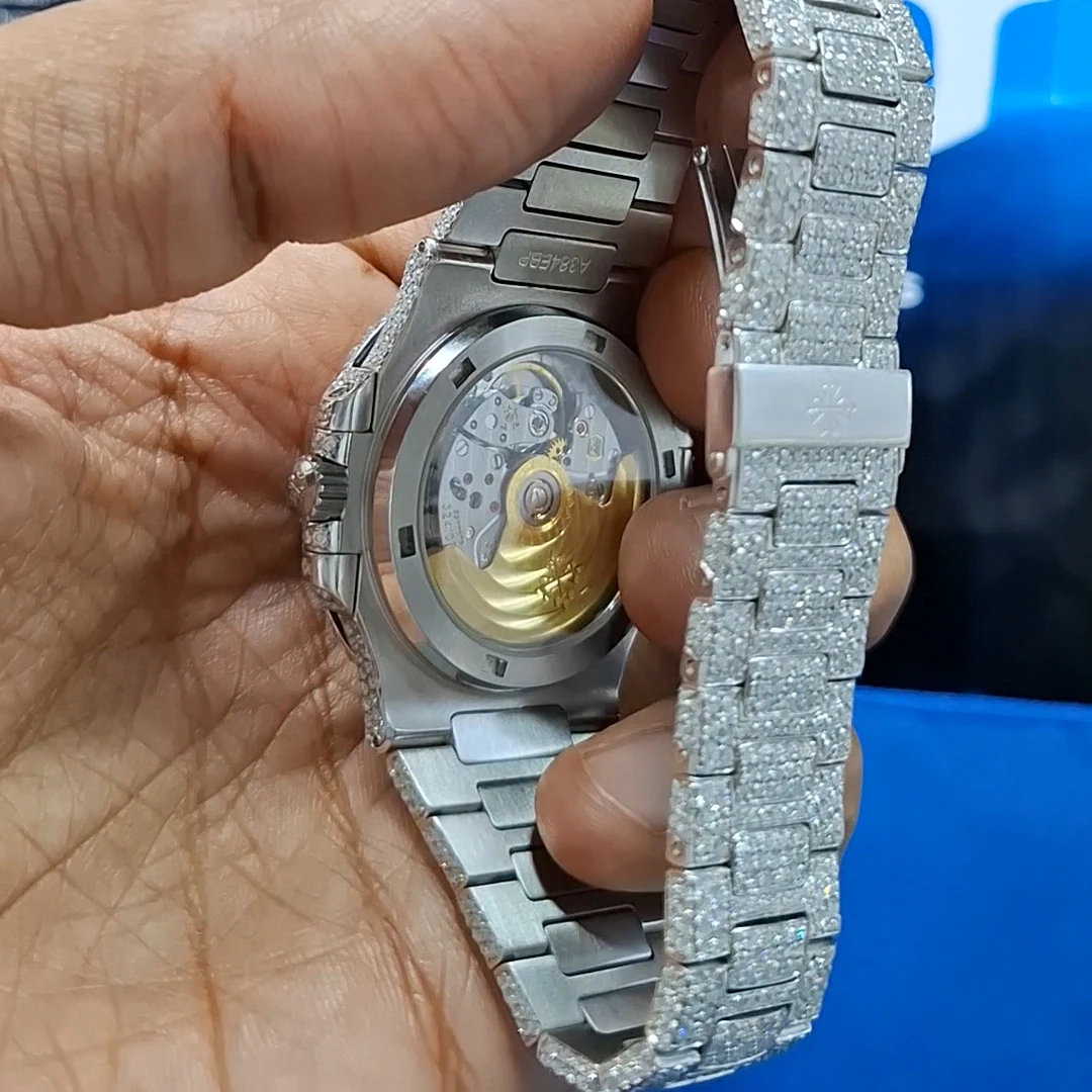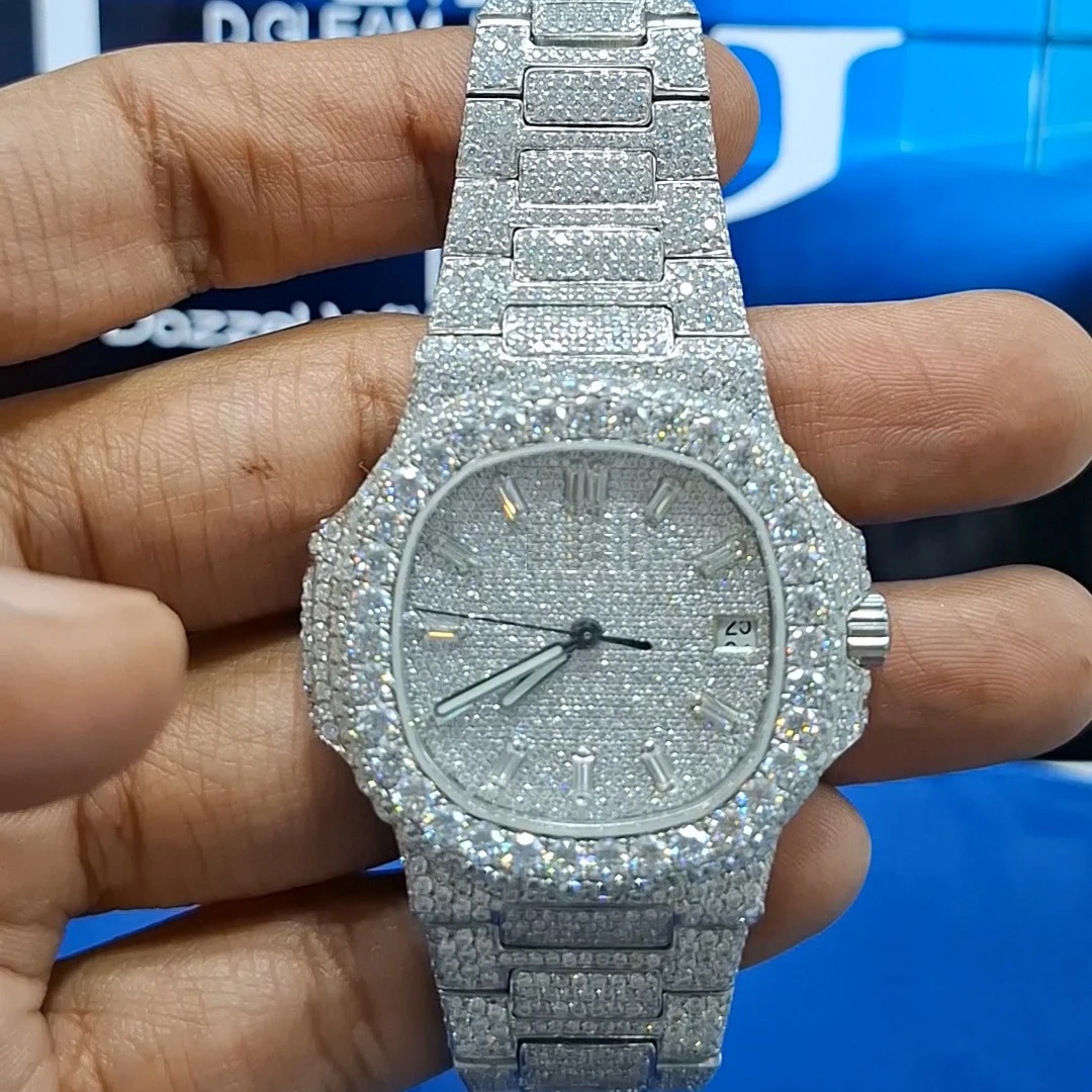 2026 New Collection Men's Luxury Fashion Real Diamond Stainless Steel Watch VVS Analog Display Antique Glass Dial