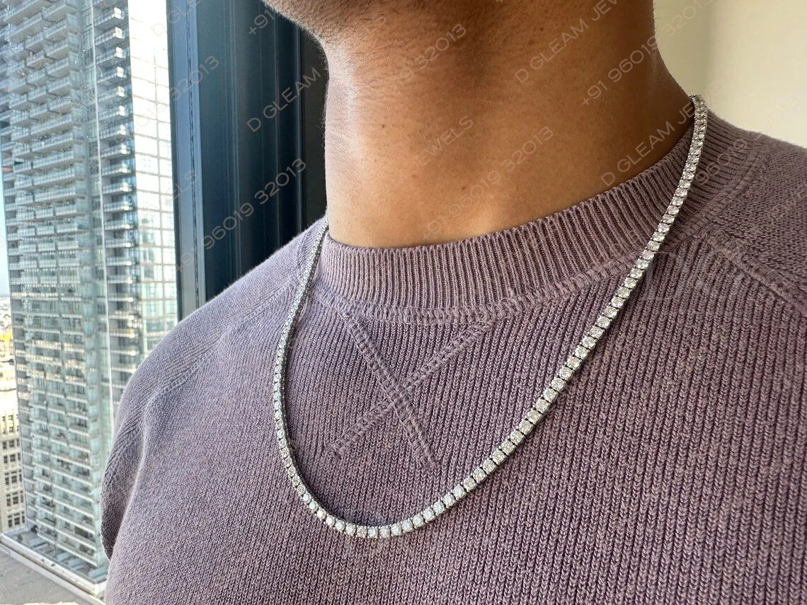 14K White Solid Gold Women's Trendy Diamond Tennis Necklace IGI Certified Link Chain Yellow Rose Gold 30ct Lab Grown Diamonds