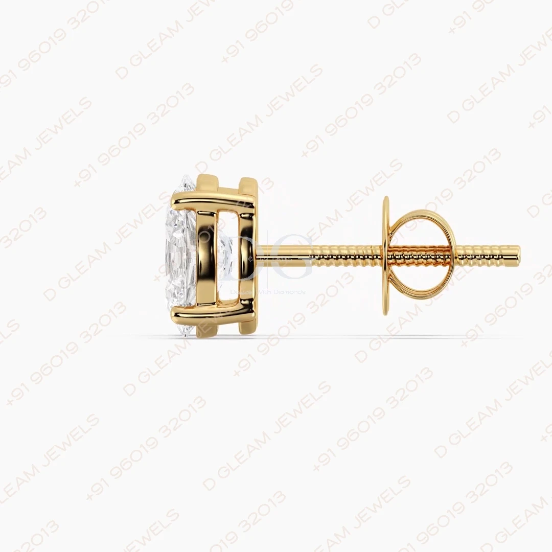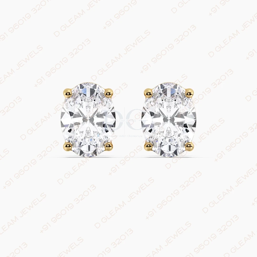 Four Prong Oval Lab Diamond Stud Earrings Trendy Square Profile Rose Gold & White Gold for Engagement Wedding Parties Gifts