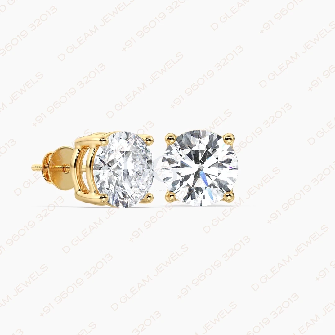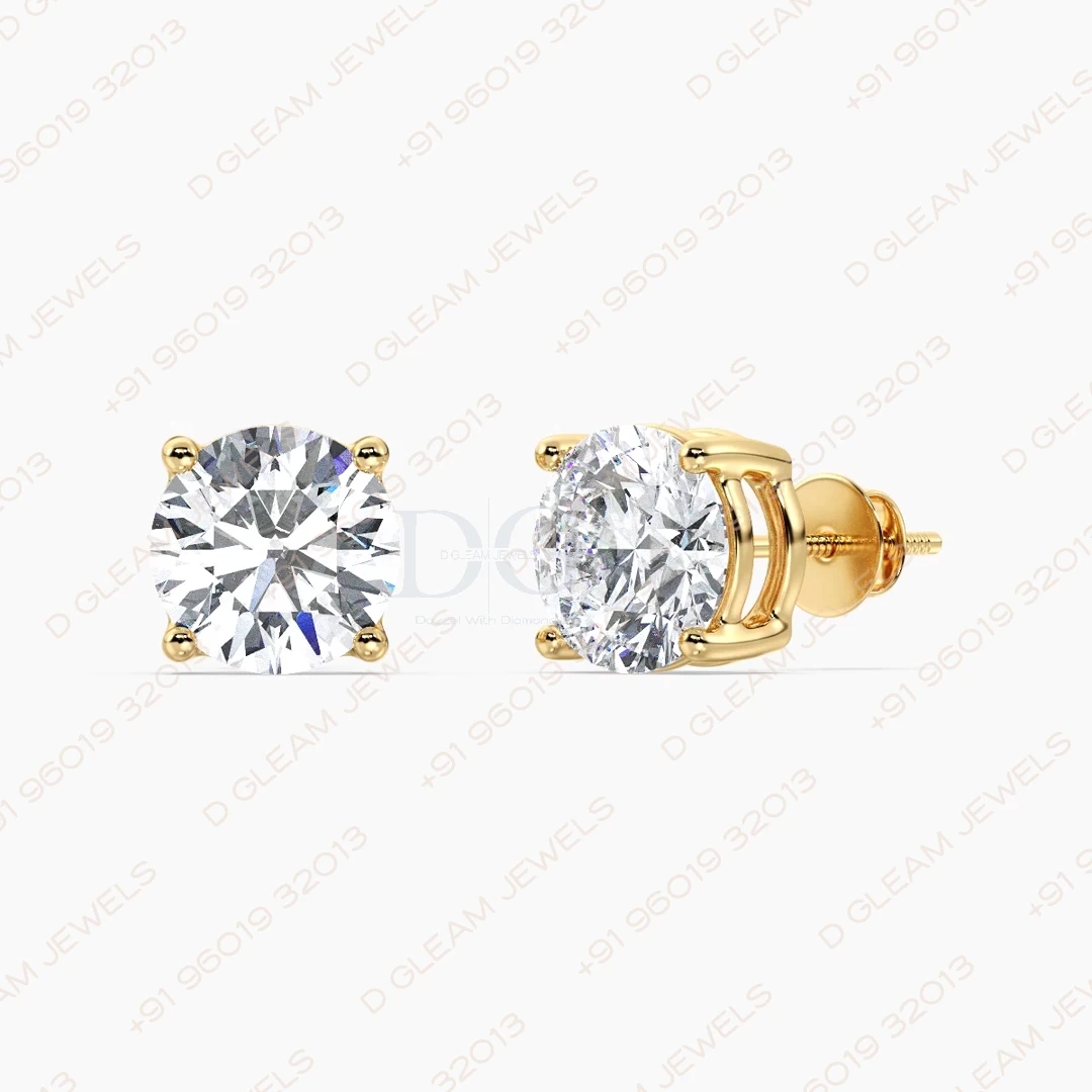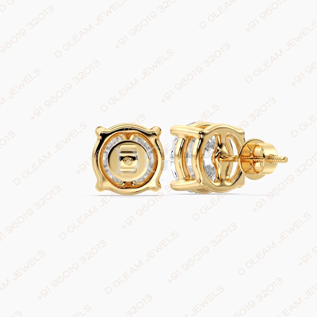 Square Profile Rose Gold & White Gold 14Kt 2ct Lab Grown Diamond Stud Earrings Four Prong Classic Wedding Engagement Party Gift