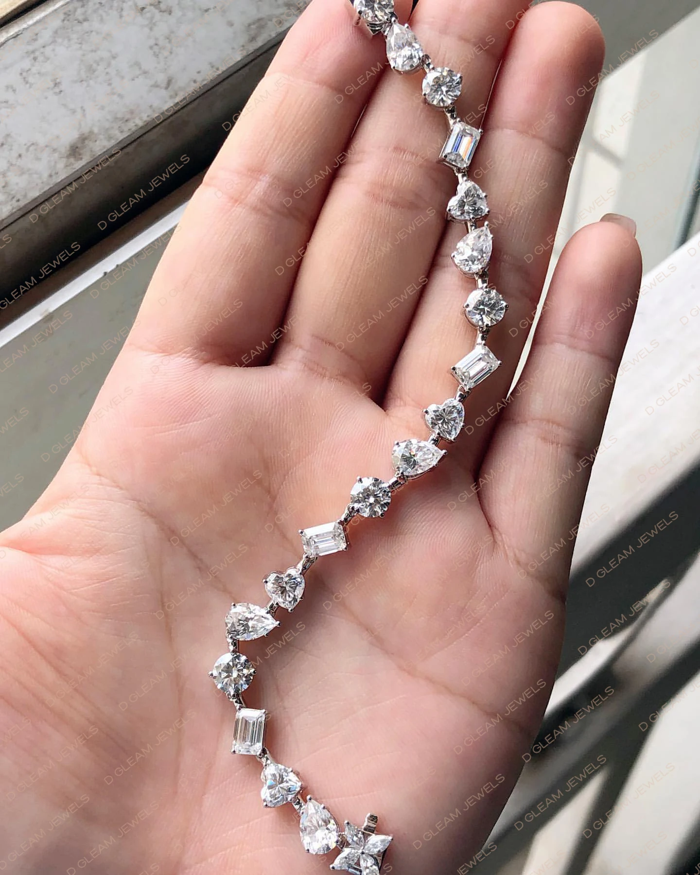 Women's Classic Solid Gold Tennis Bracelet Mixed Shape Diamond Fine Jewelry Bangle for Party Wear Gift Idea