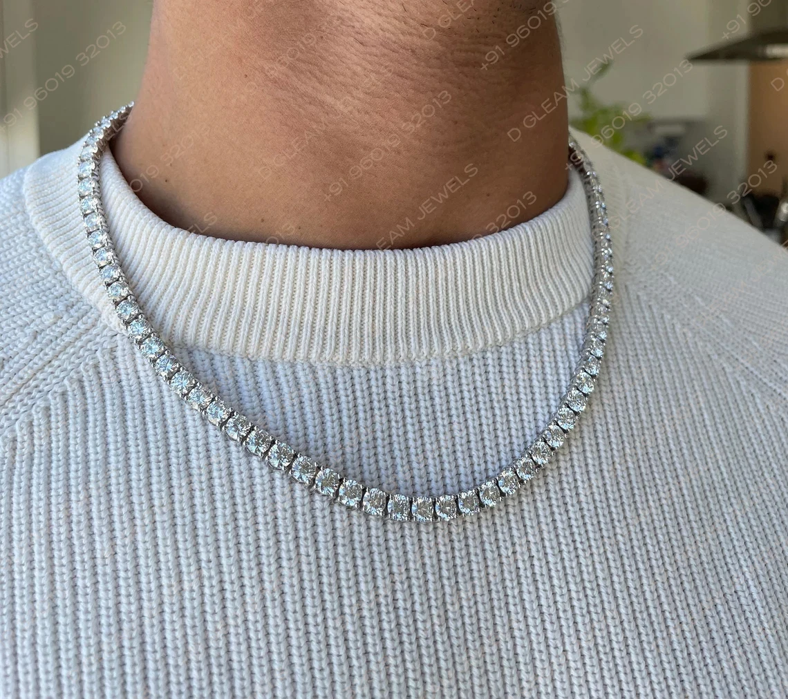 14K White Gold 50 Carat Diamond Tennis Necklace Trendy Link Chain with Solid Gold Men's Lab Grown Diamond Necklace