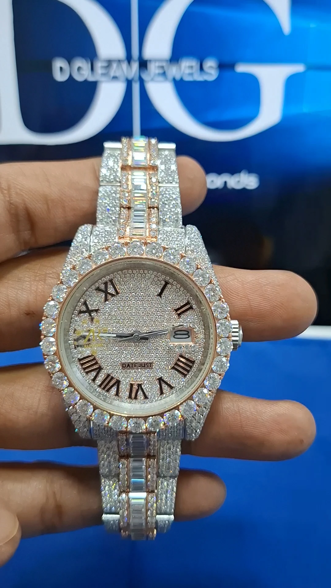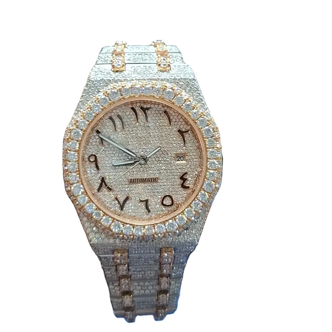 New Arrival Hip Hop Exclusive Fashion Designer Jewelry Trending Men's Stainless Steel Digital Wrist Watch Moissanite 20mm 3BAR