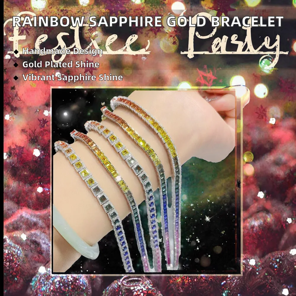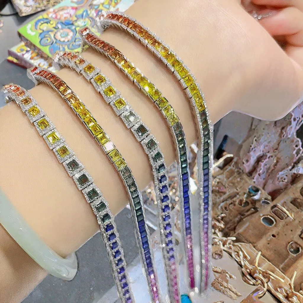New Arrival Rainbow Sapphire Moissanite Shining Gold Chain Link Bracelet Handmade Knitting Gift for Party Wedding Christmas