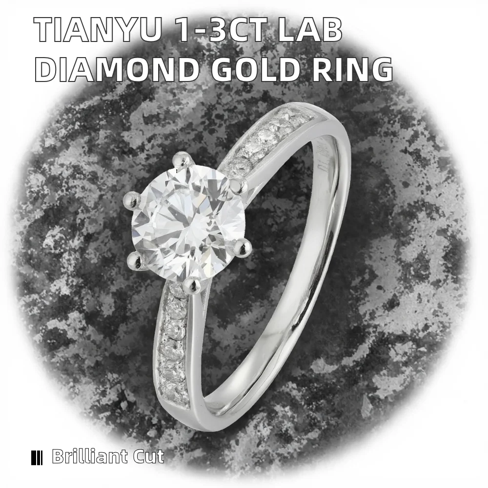 For TIANYU GEMS Customized Lab Diamond 1CT 2CT 3CT 14K White Gold Ring for Wedding Engagement Gift or Party Free Engrave