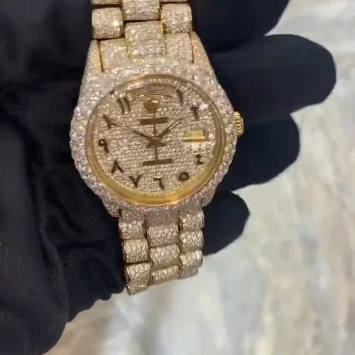 Antique Fashion Moissanite Watch Luxury Full Diamond Stainless Steel Case Analog Dial Display Band Excellent Price