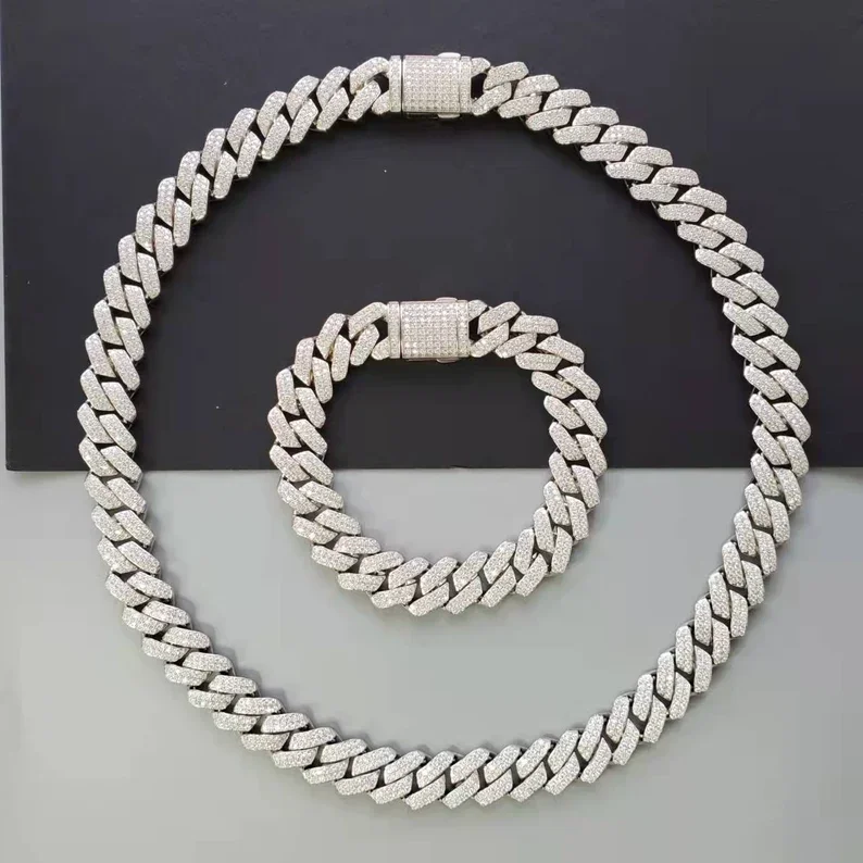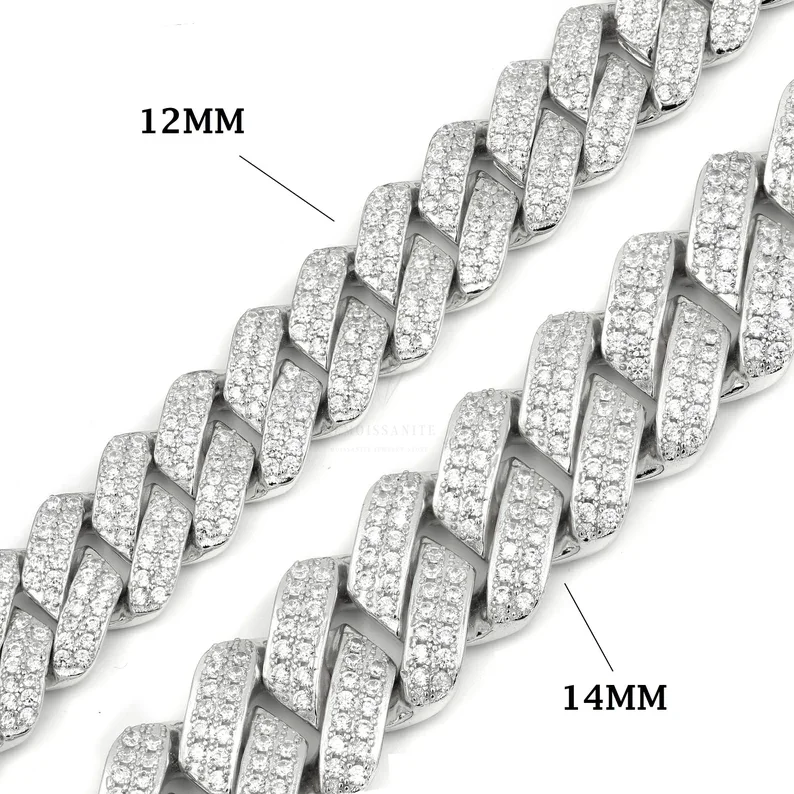 Customized 12mm Thick Miami Cuban Link Bracelet VVS Tester Passing Lab Grown 925 Silver Hip Hop Diamond Wedding Party