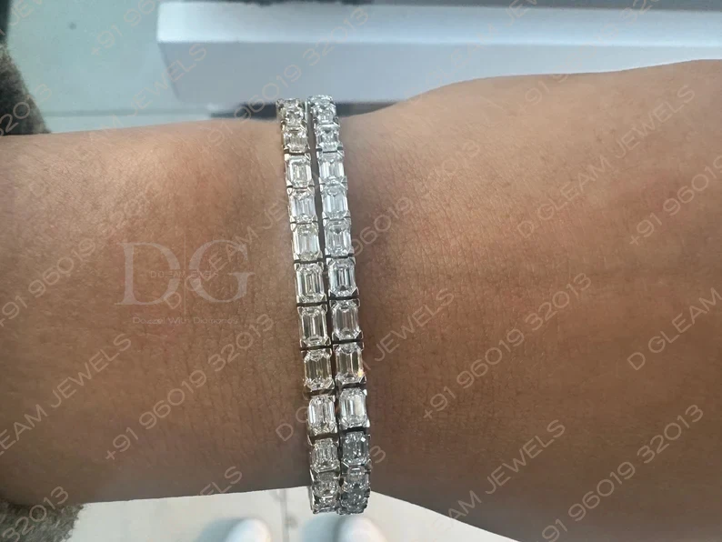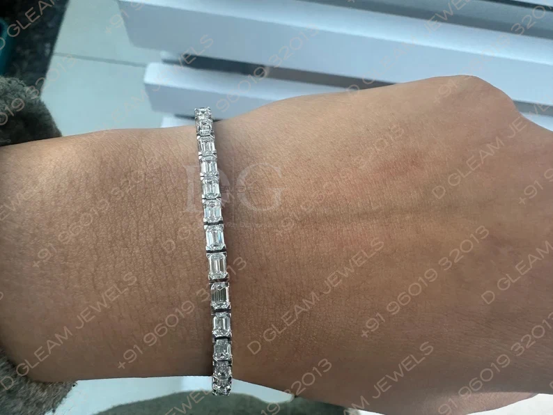 9 Carat Emerald Cut Yellow & Rose 925 Silver Handmade VVS Clarity Moissanite Bracelet Classic HipHop Style for Parties