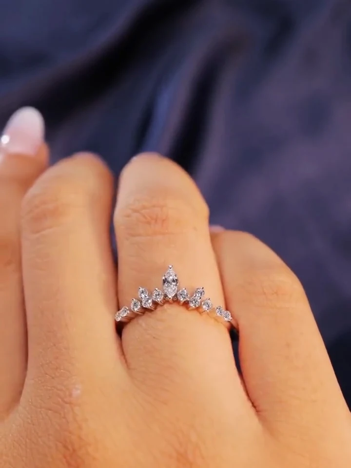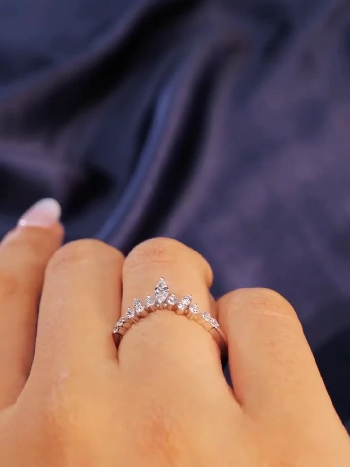 Yellow Gold Christian Moissanite Diamond Chevron Band Prong Setting IGI Certified Marquise Cut Wedding Engagement Gift