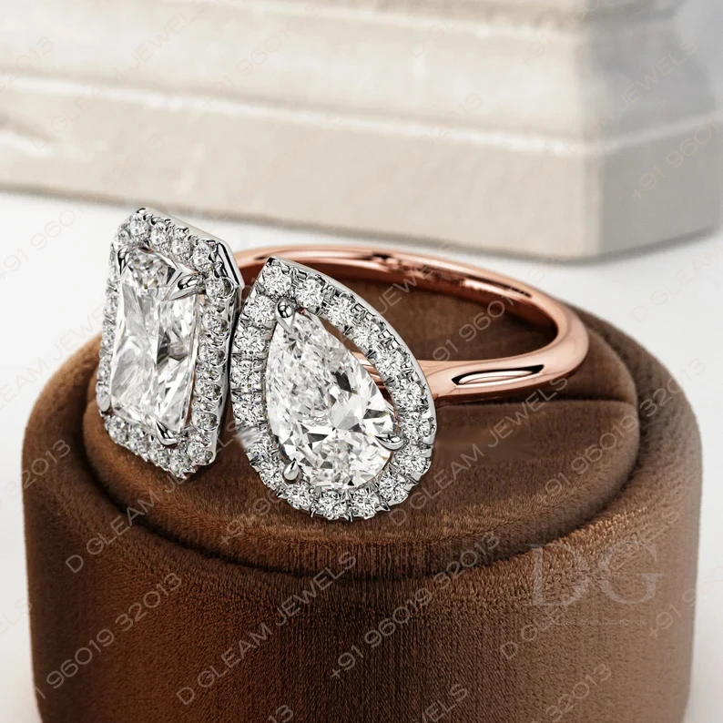 2.5 Carat D VVS Radiant Pear-Cut Moissanite Two-Tone Toi Et Moi Halo Engagement Gift Wedding Anniversary Ring IGI Certified