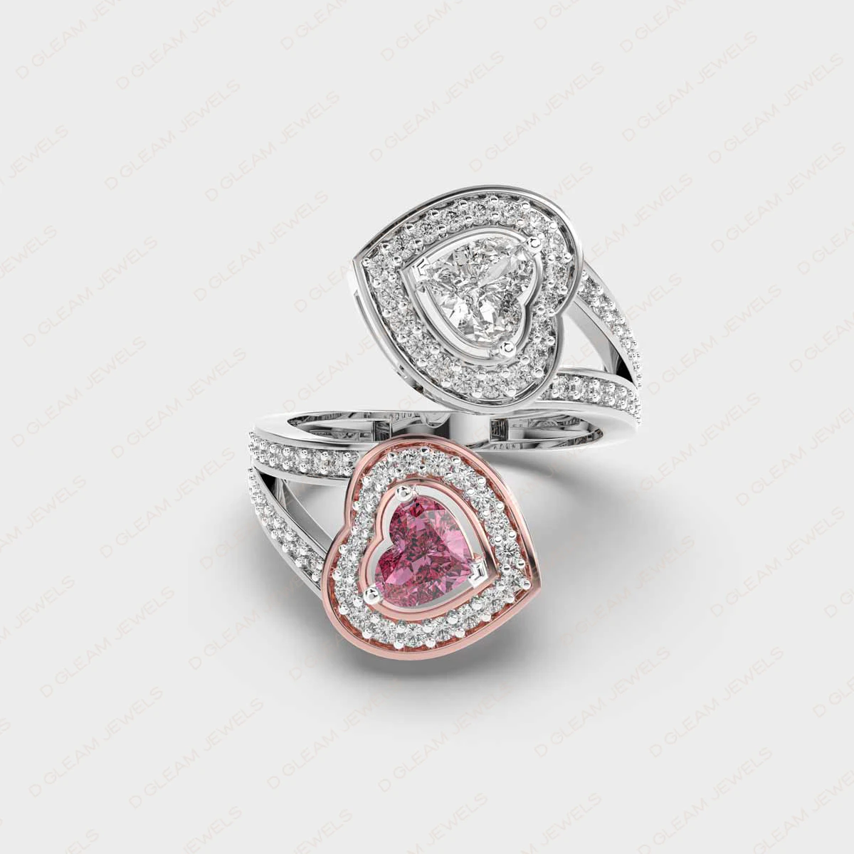 Moissanite Diamond Engagement Ethnic Solitaire Ring Heart Cut 14K Gold Band Geometric Design Wedding Anniversary Party