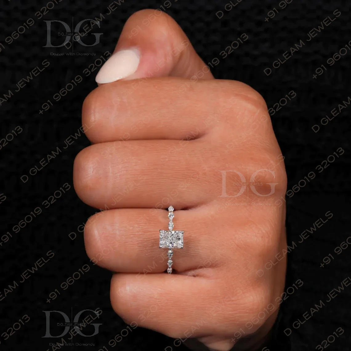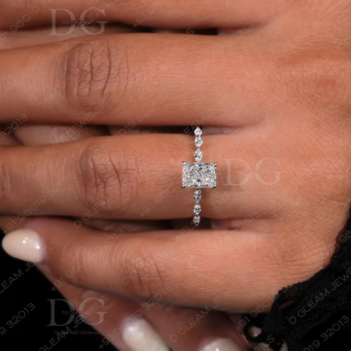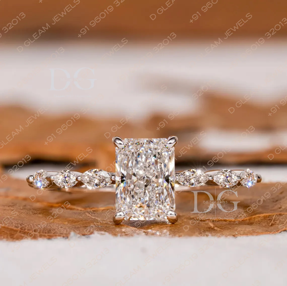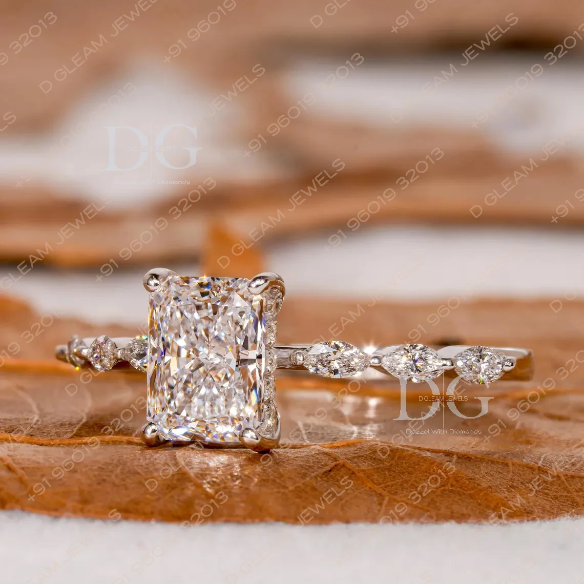 1.00Ct Radiant Cut Lab Grown Oval Engagement Ring Side Marquise Diamond Pave Wedding Anniversary Ring IGI Certified Hidden Halo
