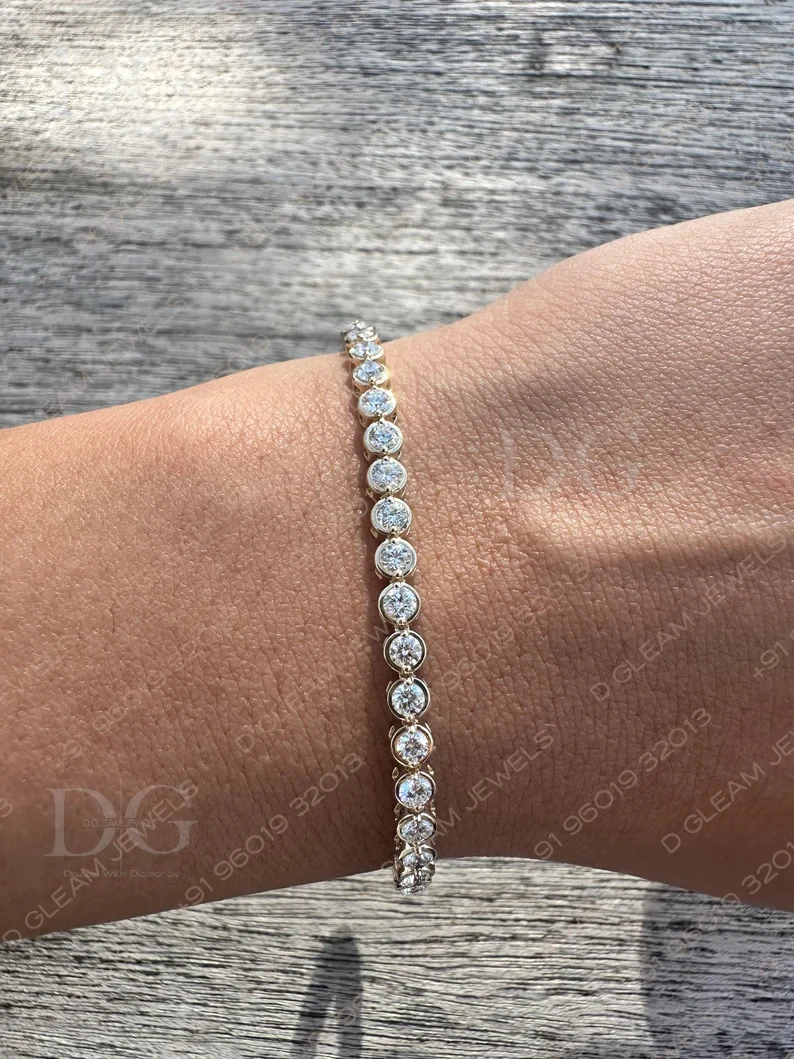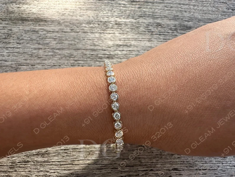 Classic Yellow Solid Gold Tennis Bracelet Lab Grown Diamond Bezel Bracelet with Diamond Bezel Elegant and Stylish