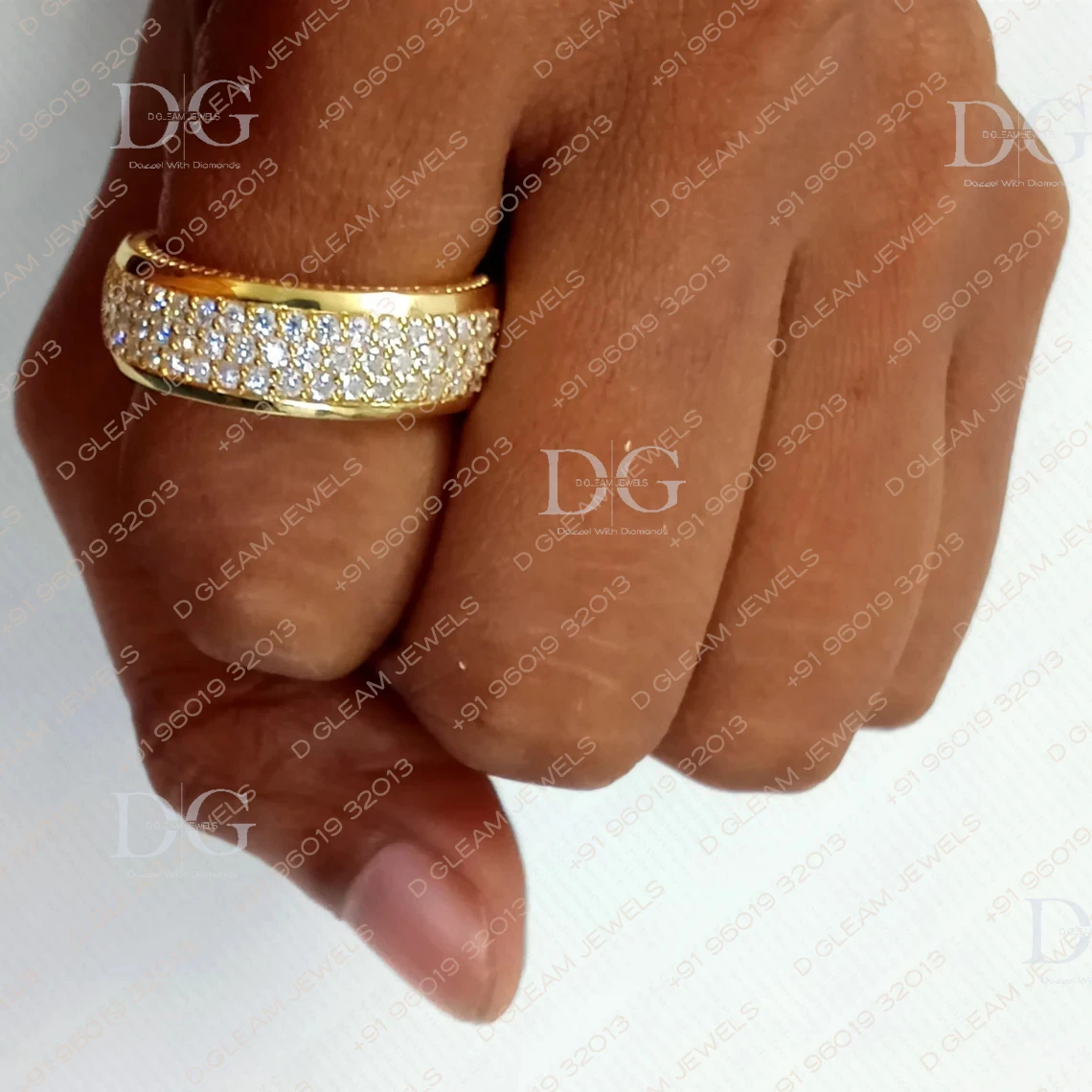 Men's Full Eternity Wedding Band Ring 14K Yellow Gold Lab Grown Diamond CVD Diamond for Parties by Lab Grown Diamond
